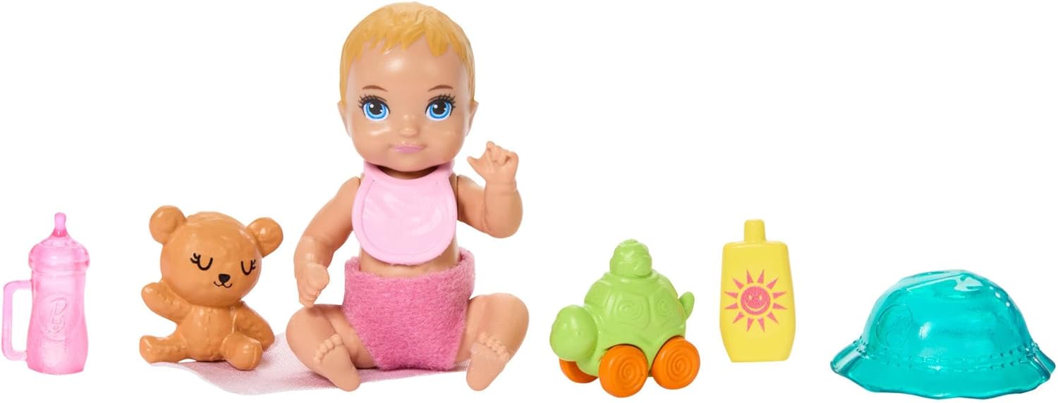 La bambola Skipper è molto impegnata: le babysitter in erba potranno prendersi cura di un bambino con i set Barbie Skipper Baby-Sitter ispirati alle situazioni quotidiane, come andare a fare una passeggiata! Dotato di passeggino dotato di seggiolino auto rimovibile, questo set è ideale per immaginare una giornata all'aria aperta con la bambola Skipper e il bambino di cui si prende cura! Gli accessori a tema, come i giocattoli, un cappello, una crema solare e una tazza da allenamento con manici che la bambola può tenere, rendono facile immaginare una passeggiata pomeridiana! La bambola babysitter Skipper è pronta per una giornata di lavoro e di gioco con un look rimovibile e alla moda, caratterizzato da un vestito casual colorato e scarpe da ginnastica. I bambini potranno collezionare tutti i giocattoli Skipper Baby-Sitter per inventare infinite storie, soprattutto se amano prendersi cura e divertirsi con i propri fratellini e sorelline! Articoli venduti separatamente. Alcuni prodotti potrebbero non essere commercializzati.