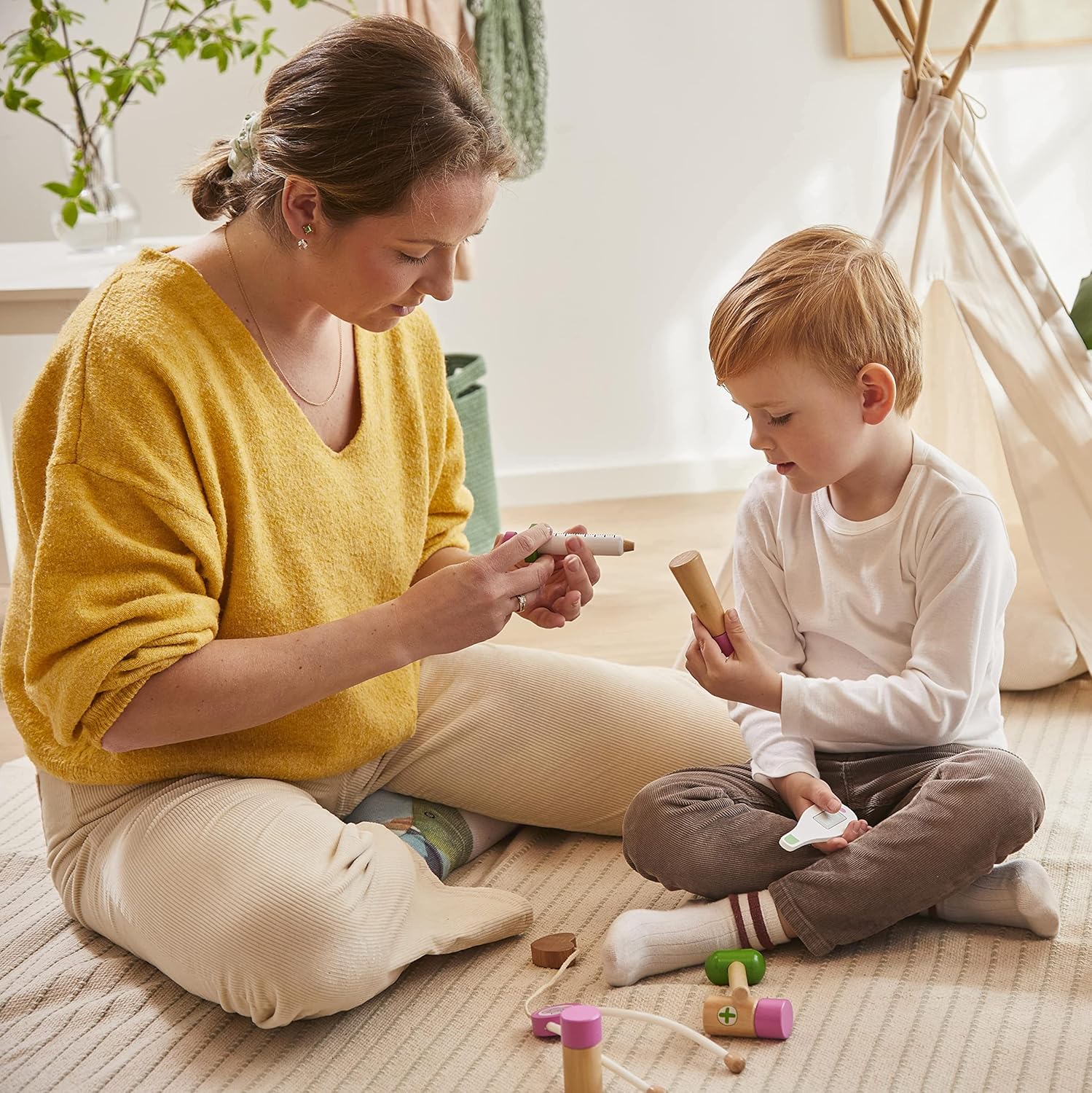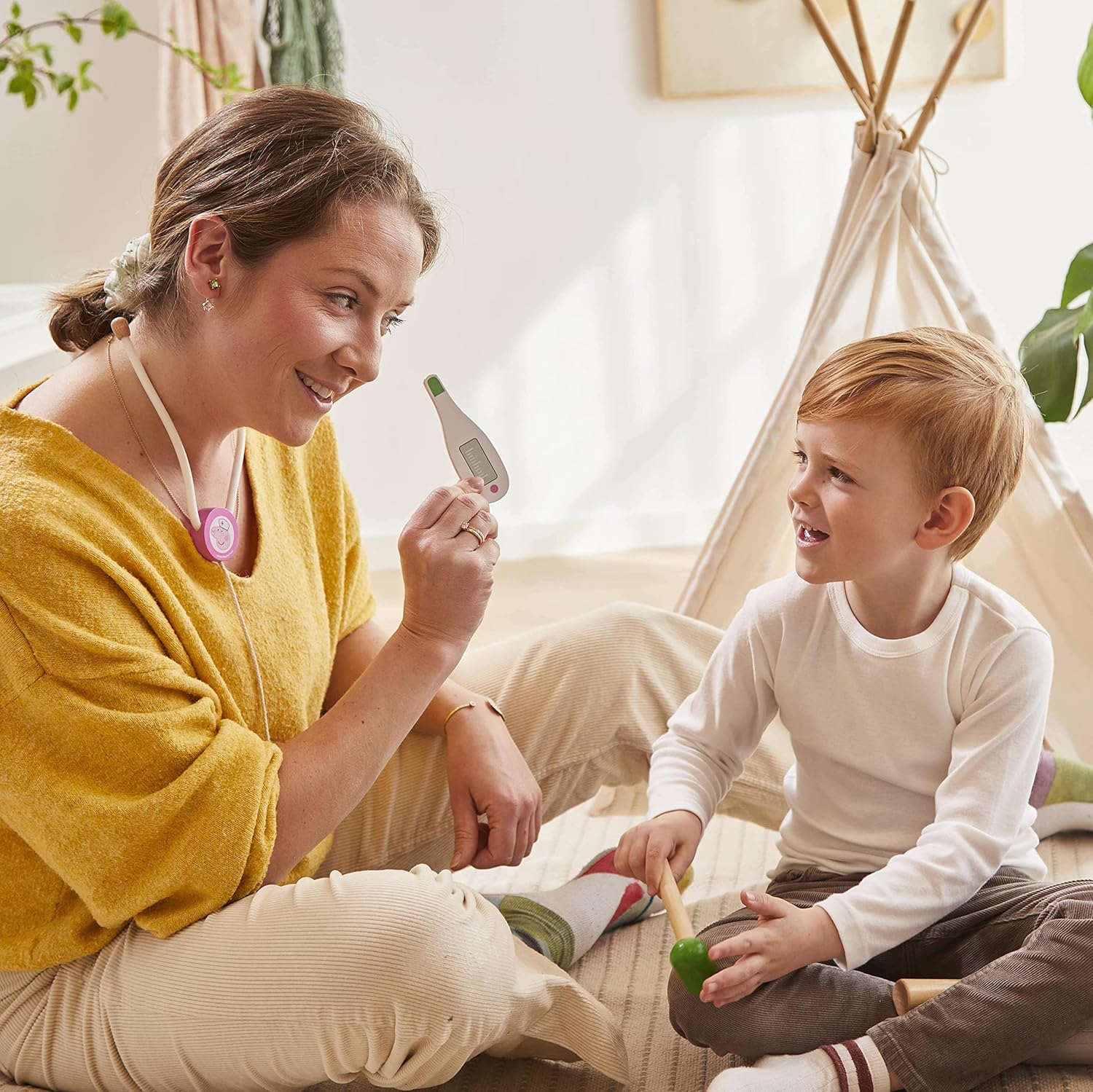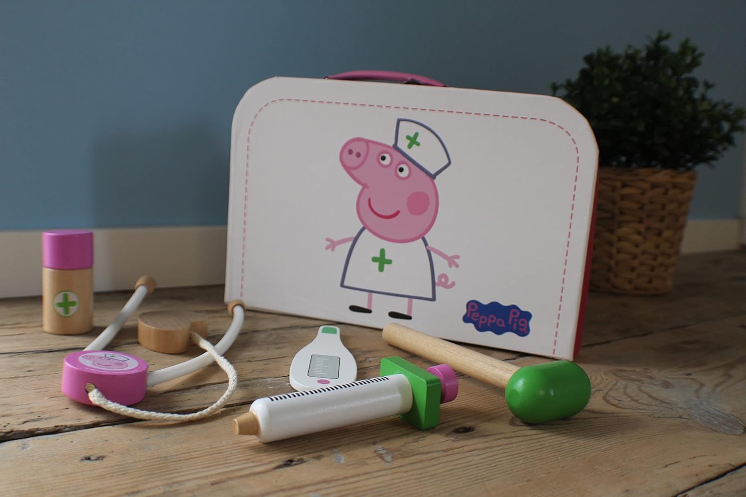 ????Giocare al dottore è una grande gioia per molti bambini, ed è ancora più divertente quando si tratta dell'attrezzatura della loro amata Peppa Pig. Il set comprende una simpatica valigetta da medico con 6 strumenti in legno all'interno, un martello, un termometro, una siringa, uno stetoscopio e 2 flaconi di medicinali. ??La valigia ha una pratica maniglia ed è facile da trasportare ovunque così il tuo piccolo dottore sarà sempre pronto ad aiutarti. ??Realizzato in legno di alta qualità che durerà per anni. Adatto per 2 anni e oltre. Licenza ufficiale Peppa Pig. ??Il gioco di ruolo stimola l'immaginazione, la creatività, l'empatia del bambino e promuove le sue abilità sociali. Un fantastico set da gioco adatto per giocare insieme. ??I prodotti Barbo Toys sono progettati in Danimarca e si concentrano sulla sostenibilità e sui materiali di alta qualità. I nostri prodotti sono progettati e realizzati secondo la filosofia imparare attraverso il gioco e no e stimolano attivamente l'immaginazione e lo sviluppo dell'apprendimento del bambino.