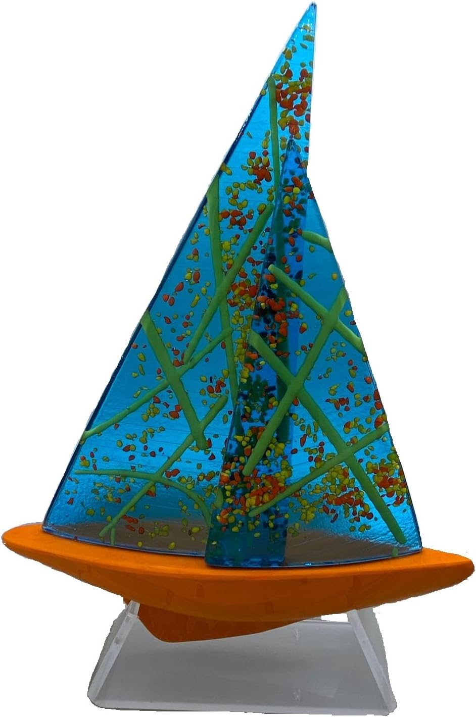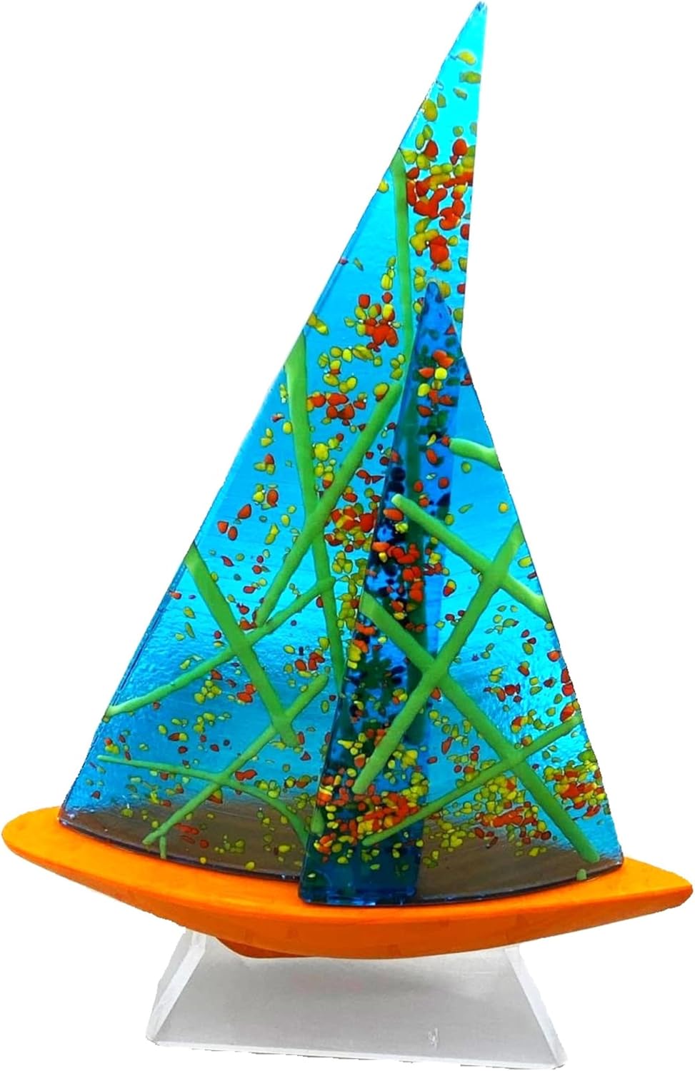 Perfetta per amanti del mare e della vela Ogni barca a vela è soffiata a mano nell'isola di Murano, Venezia, utilizzando tecniche tradizionali tramandate da generazioni. Questo rende ogni pezzo unico, con lievi variazioni che ne attestano l'autenticità e l'artigianalità. Design Elegante : Il design raffinato cattura la leggerezza e la grazia di una barca a vela che cavalca le onde. Le sue linee pulite e la silhouette elegante ne fanno un complemento perfetto per ogni ambiente, aggiungendo un tocco di classe e serenità. Certificato di Autenticità : Fornita con un certificato di autenticità che garantisce l'origine e la qualità artigianale del pezzo, direttamente dalle mani del maestro vetraio a casa tua. Misure H 35 L 25