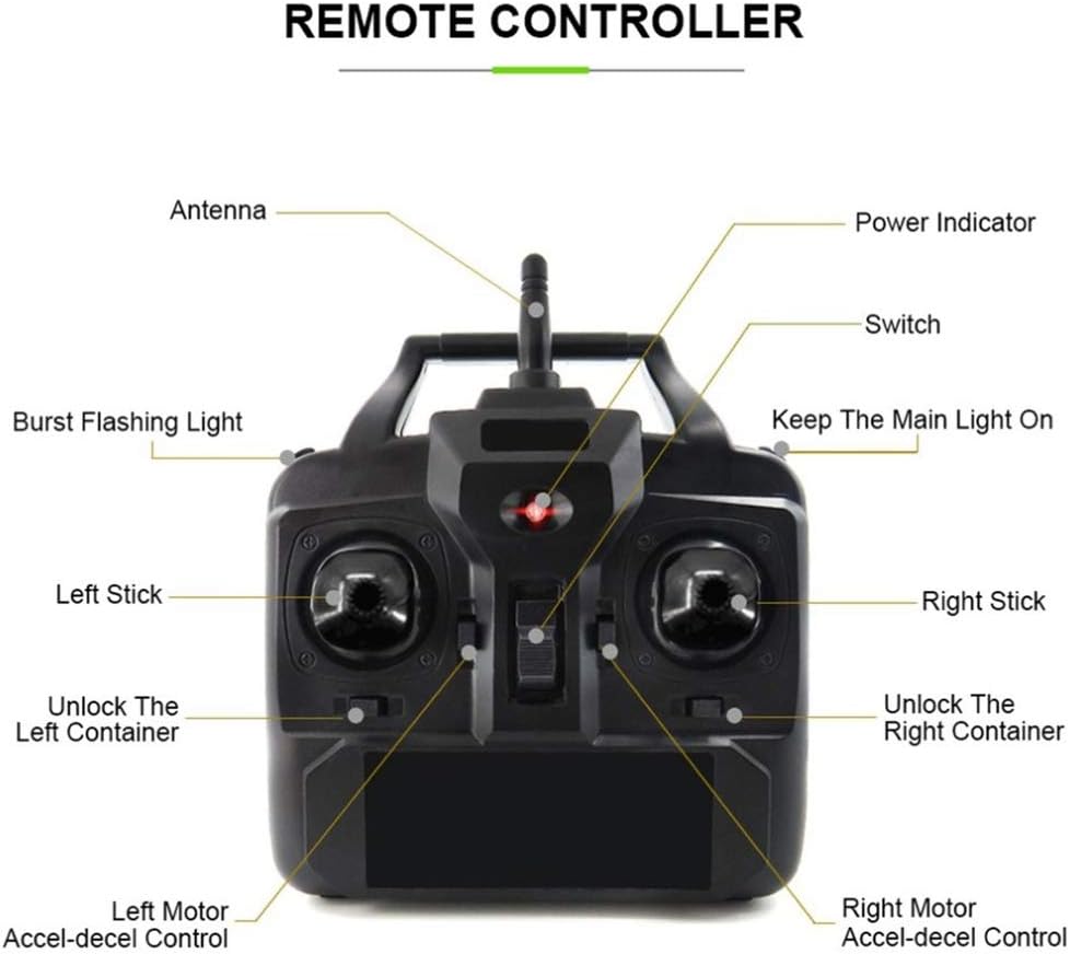 [Funzioni] Muoviti avanti/indietro, gira a sinistra/destra, esca. Corpo della barca: adotta materiale ABS di alta qualità per lo stampaggio a iniezione, più stabile e più solido, in grado di resistere a forti venti e onde, aspetto superbo, lavorazione squisita e qualità. [Batteria al litio ad alta capacità] posizionata al centro del corpo dell'imbarcazione e più stabile, può essere caricata più velocemente e con più potenza. [Potente doppio motore brushless] Carico enorme di due serbatoi per esche separati che possono essere controllati separatamente. Serbatoio per esche di grande capacità: il peso è di 1,5 kg. Distanza del telecomando: 500 m senza interferenze, il segnale è più stabile in un ambiente limpido. [Il miglior regalo per bambini e adulti] Affronta il vento e le onde con queste barche giocattolo. Nel design sono implementati l'allarme di impermeabilità e cattivo segnale, l'allarme di batteria scarica e l'allarme di fuori portata. È interessante, veloce, durevole, economico e redditizio. Non dobbiamo preoccuparci nei laghi e nelle piscine, ma ricordiamo di non usarlo in acqua salata. È il miglior regalo per bambini e adulti.