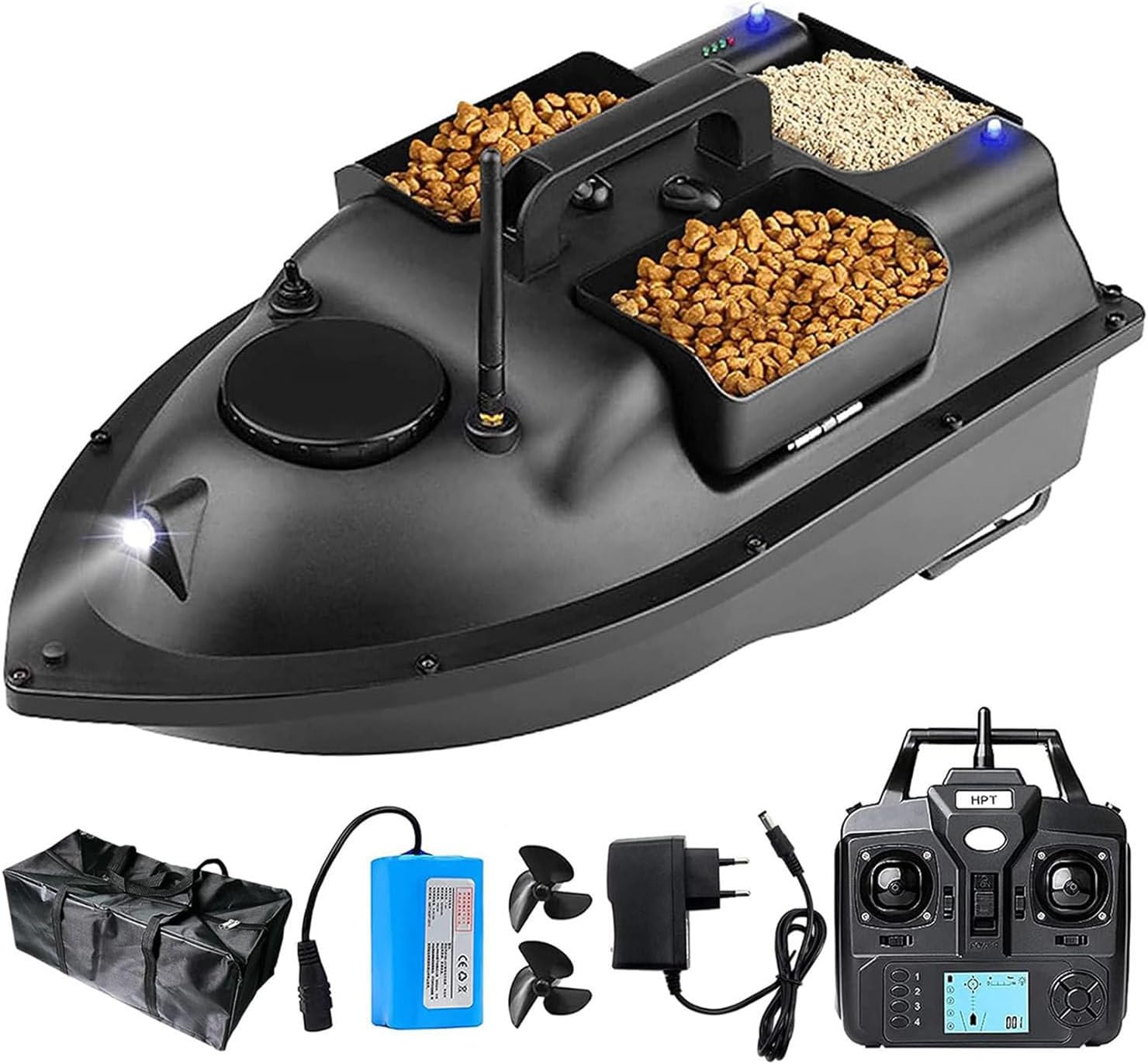 (Rilevamento della distribuzione dei pesci): La nostra barca da mangiatoia è dotata di un ecoscandaglio intelligente che, utilizzando il posizionamento del sonar, riconosce le condizioni e il contorno del fondo dell'acqua in tempo reale. Se la temperatura dell'acqua viene visualizzata in °C o °F, i simboli dei pesci lo indicano e determinano la posizione e la profondità del pesce. La ricezione del segnale dell'ecoscandaglio è di 100 me l'intervallo di profondità di misurazione: 0,6-36 m. (Adattarsi a una varietà di ambienti): la barca a motore è dotata di doppi motori ed eliche a tre ali che forniscono molta forza per i viaggi veloci. , una forma monopezzo completamente chiusa e un guscio anticollisione adatto a una varietà di acque. (Batteria al litio ad alte prestazioni): la barca a motore è alimentata da una batteria al litio da 5200 mAh. Può essere caricato separatamente ed è facile da installare. Dopo ogni carica completa, la batteria da 5200 mAh può essere utilizzata per circa 2-3 ore. Il rilevatore può essere caricato tramite USB. Puoi scegliere un altro numero di batterie di backup in base alle tue esigenze.
