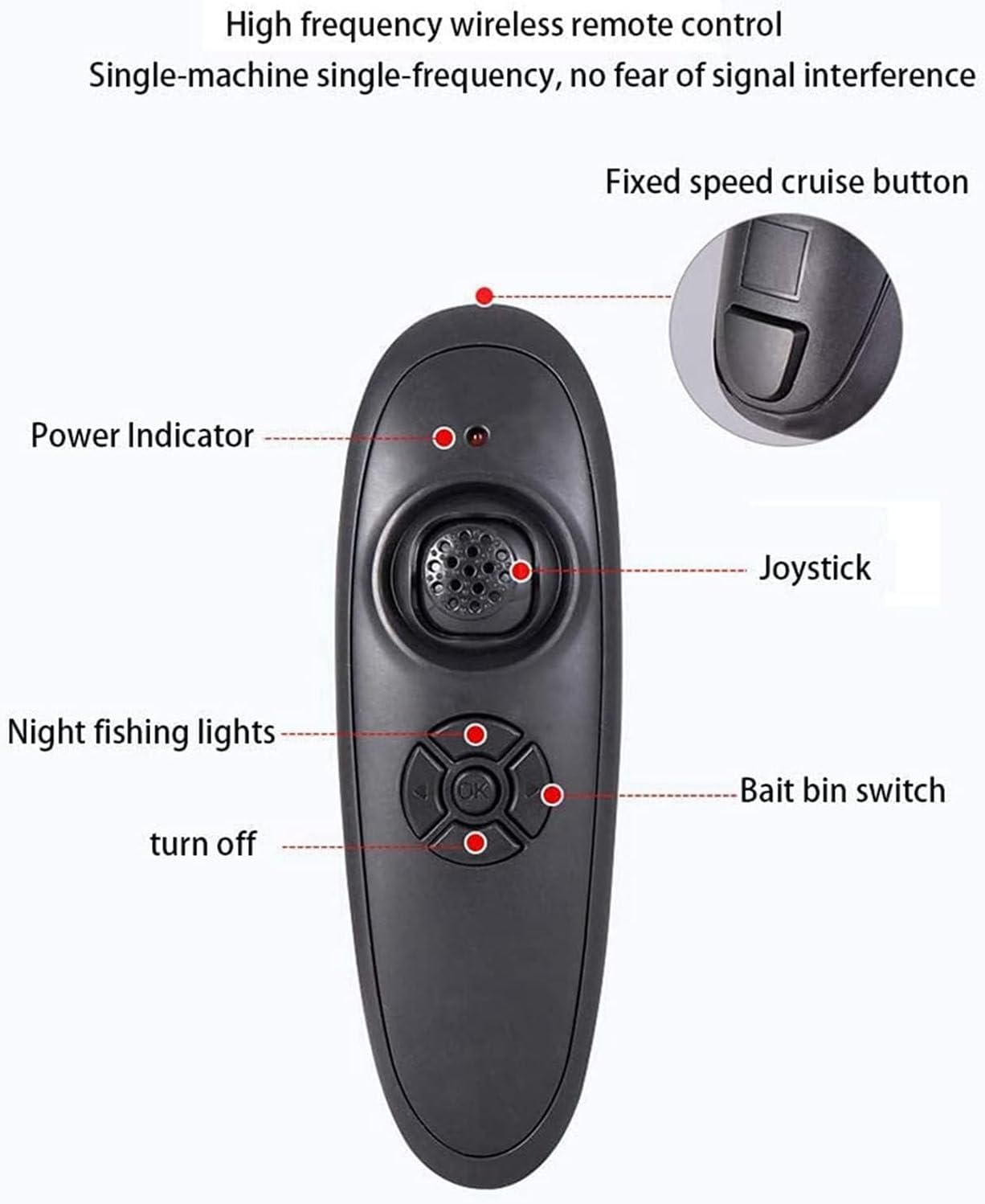 【BAITA CON TELECOMANDO】: Il corpo principale della barca è realizzato in materiale ABS, che presenta una struttura robusta e una resistenza alle crepe, in grado di resistere a forti venti e onde, con un aspetto raffinato, una lavorazione squisita e un design a doppio motore per carichi elevati. 【RICEZIONE DEL SEGNALE A 500 M】: La distanza di controllo remoto della nostra barca può raggiungere circa 500 metri, resistendo a e onde di livello 3-4. Il segnale del telecomando della barca è potente, basta premere il pulsante sul telecomando per controllare la distanza. 【LUCI NOTTURNE A LED PER LA PESCA】: La barca è dotata di luci notturne a LED ad alta luminosità integrate che migliorano la visibilità e attirano i pesci in condizioni di scarsa illuminazione o di notte, facilitando la pesca notturna e consentendo di vedere chiaramente la barca da lontano anche di notte. Rende più precisa la ricerca dei punti di pesca di notte. 【CONTROLLO AUTOMATICO DELLA VELOCITÀ DI CROCIERA】: La funzione di controllo automatico della velocità di crociera della barca esca impermeabile può aiutare la barca a navigare direttamente a una velocità costante e impedirne l'uscita. I doppi motori possono controllare efficacemente la direzione della barca esca. 【BATTERIA A LUNGA DURATA】: È dotato di una batteria al litio da 12000 mAh che offre fino a 3 ore di autonomia continua, offrendoti più tempo in acqua. Questo feeder da pesca con telecomando wireless può trasportare 1,5 kg di esche, rendendo la pesca più facile e comoda.