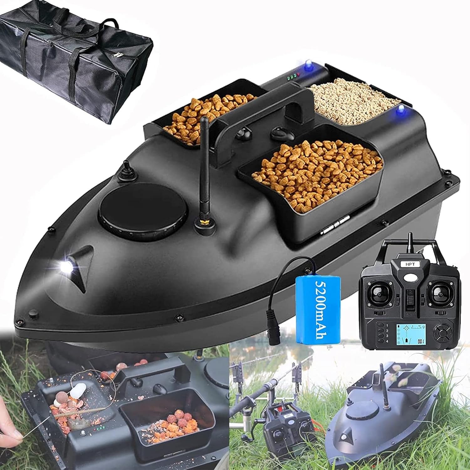 【Barca esca telecomandata da 500 m】: Rispetto ai metodi di pesca tradizionali, la barca esca telecomandata è più precisa e veloce. Può portare esche e ami nelle profondità del lago per la pesca o per il posizionamento delle esche. Spesso sorprende gli appassionati di pesca. 【Potenti doppi motori】: La barca esca è dotata di funzione di crociera automatica. Garantisce che la barca possa muoversi in linea retta a velocità costante, risparmiando tempo ed energia. La barca esca è dotata di doppi motori per controllare efficacemente la direzione di marcia della barca esca telecomandata. 【Forte ricezione del segnale】: La distanza di controllo della nostra barca esca può raggiungere circa 500 metri, può resistere a e onde di livello 7-8 ed è impermeabile. Il segnale del telecomando per la barca esca è potente e puoi controllare la distanza semplicemente premendo i pulsanti sul telecomando. 【Doppie batterie da 19000 mAh】: La barca da pesca con esche, dotata di borsa per il trasporto, ha un'autonomia di 3-4 ore e un'elevata potenza. Questo pasturatore da pesca con telecomando wireless può trasportare 1,5 kg di esche, rendendo la pesca più semplice e pratica. 【Luci da pesca notturne】: La barca da pesca con esche è dotata di luci per la visione notturna, che facilitano la pesca notturna e consentono di vedere chiaramente la barca da lontano anche di notte. Rende più precisa l'individuazione dei punti di pesca di notte.