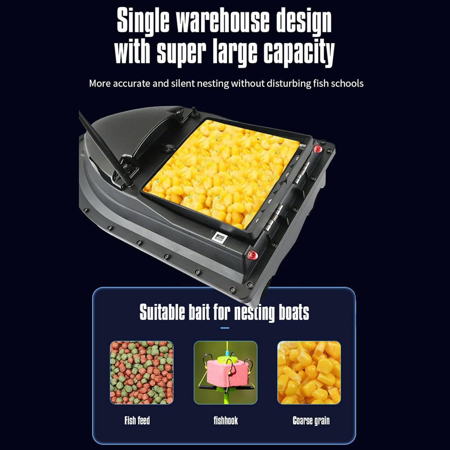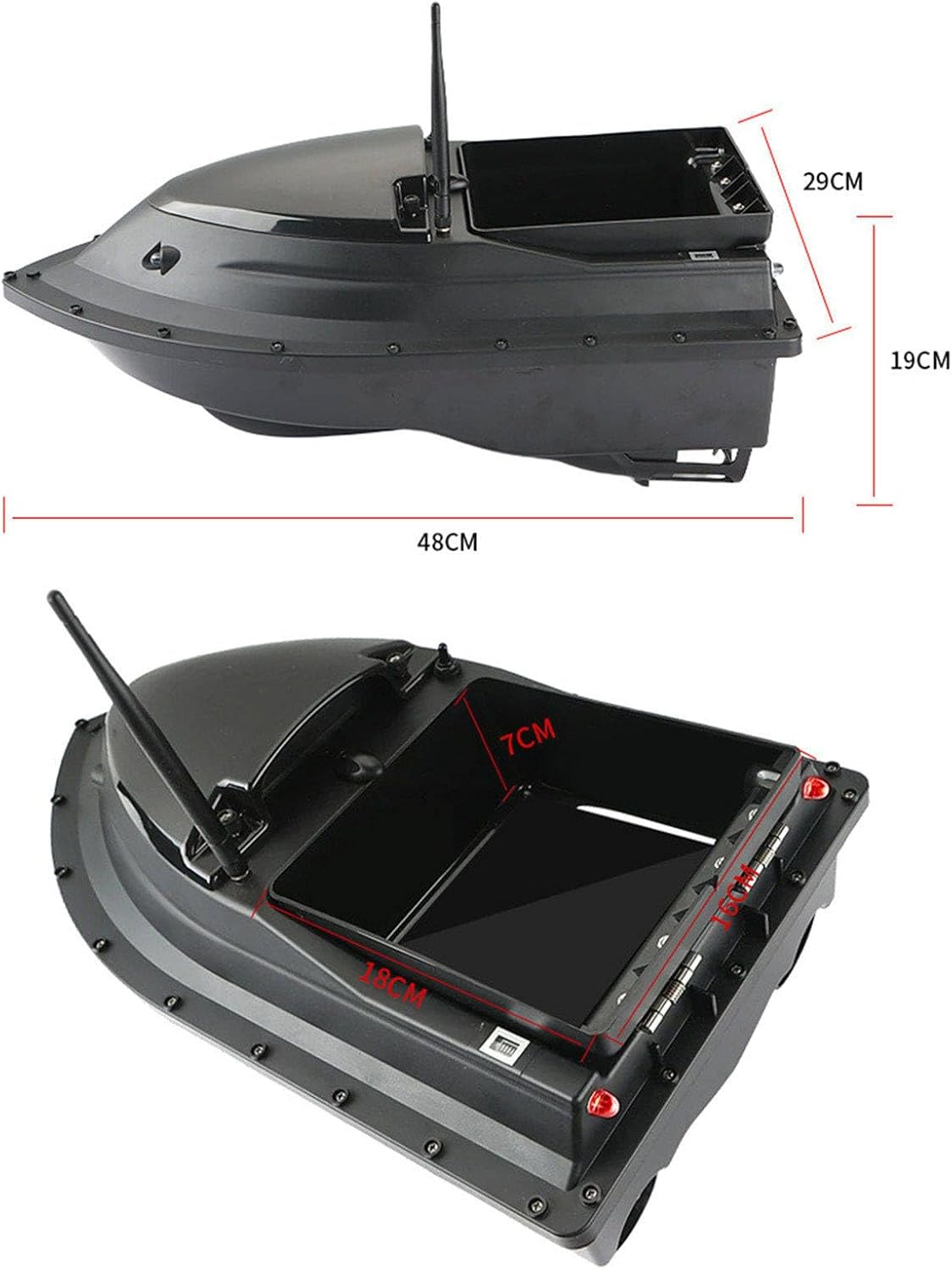 DESIGN IMPERMEABILE: questa barca da pesca è realizzata in materiale ABS e prodotta con stampaggio a iniezione, che ha un'eccellente stabilità e durata. Può navigare con sicurezza in presenza di venti forti e onde enormi, e ha una cabina impermeabile completamente chiusa con una migliore tenuta e una maggiore resistenza al v-ento e alle onde. DISTANZA DI CONTROLLO REMOTO PIÙ LUNGA: la barca esca ha una portata di 400-500 metri. Può essere posizionata in stagni e laghi. Il segnale del telecomando è stabile e privo di interferenze, consentendo di godere della comodità illimitata della tecnologia. BATTERIA A LUNGA DURATA: la batteria ad alta capacità da 7,4 V e 5200 mAh prolunga la durata della batteria e consente di risparmiare tempo per le ricariche frequenti. L'indicatore di bilanciamento energetico dell'imbarcazione visualizza comodamente lo stato della batteria. CAPACITÀ DI PESCA NOTTURNA MIGLIORATE: Questa barca con esca è dotata di luci a LED per ampliare il campo visivo durante la pesca notturna. È possibile individuare facilmente la direzione di navigazione, garantire un'esca accurata e catturare con successo le carpe. SERVIZIO POST-VENDITA AFFIDABILE: Le vostre esigenze sono il nostro obiettivo. Se avete qualunque domanda circa il prodotto, ritenga prego per contattarci, forniremo il feedback di 24 ore e lo risolviamo per voi appena possibile.