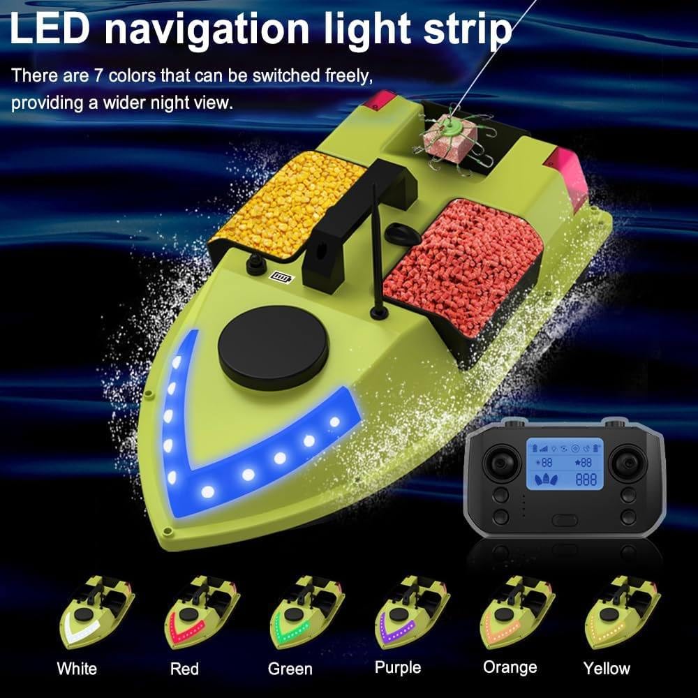 【Potenza potente】: la barca da pesca telecomandata adotta un potente design a doppio motore per fornire potenza sufficiente alla barca ed è dotata di un'elica a tre pale per aumentare la spinta e l'area delle pale nell'acqua, rendendo la potenza forte e la barca telecomandata viaggia veloce. Batteria al litio da 12000 mAh, ricarica più rapida e più durevole. 【Buone prestazioni】: la barca esca adotta una frequenza di controllo di 2,4 G e la distanza del telecomando può raggiungere i 1640,42 piedi. La barca da pesca è dotata del sisteme di calibrazione automatica Beidou e del sistemad di posizionamento GPS; è possibile impostare 40 punti di posizionamento per garantire un posizionamento accurato e migliorare l'efficienza della pesca. 【Elevata sicurezza】: il livello di potenza della barca da pesca con rilascio dell'esca viene visualizzato sullo schermo del telecomando. Se la batteria dell'imbarcazione per un lungo periodo, le luci dell'imbarcazione lampeggeranno, e l'imbarcazione tornerà automaticamente in posizione. Allo stesso tempo, lo scafo lineare riduce la resistenza all'acqua e la resistenza alla formazione di onde raggiunge il livello 7-8, garantendo la sicurezza durante il funzionamento e l'uso. 【Correzione automatica del prezzo】: la piccola barca da pesca è dotata di un sistemas di bilanciamento automatico integrato, in grado di correggere in modo intelligente il percorso di guida per garantire che l'esca mantenga una velocità uniforme e una linea retta in presenza di ventos, onde e carico. 【Design intelligente】: la barca RC ha tre scomparti per esche controllabili indipendentemente con una capacità di carico di circa 4,41 libbre, che consentono di controllare l'applicazione del nido a piacimento. Il contenitore posteriore dell'esca è inoltre dotato di un design anti-manomissione che consente di estrarre l'amo dalla lenza ed evitare che questa si aggrovigli.