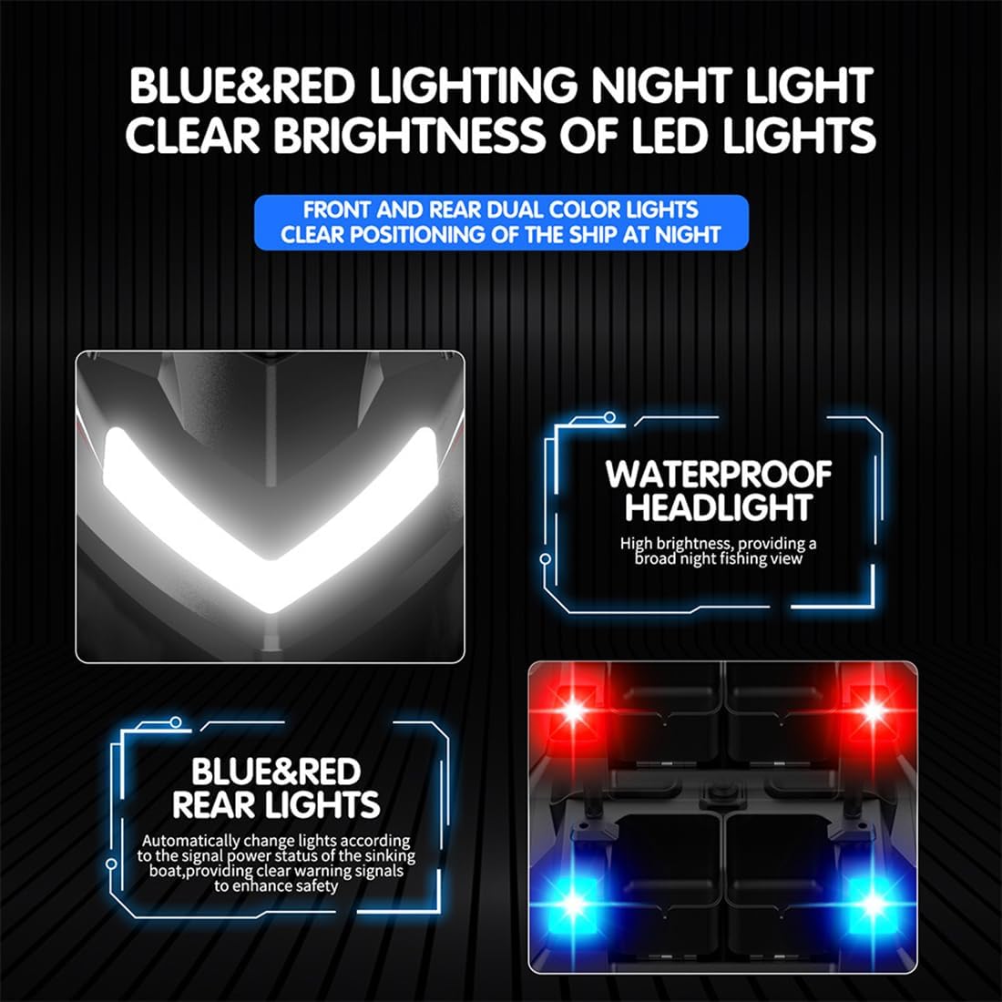Correzione automatica del percorso: giroscopio integrato per la correzione automatica dell'imbardata, garantendo un movimento fluido e preciso sotto il vento/le onde e il carico Cruise Control: imposta la modalità di crociera a velocità costante e fornisci un segnale affidabile fino a 500 m con un sistema di doppia antenna ad alto guadagno Capacità di pesca notturna: le luci LED anteriori ad alta potenza (modalità fissa/lampeggiante) e gli indicatori posteriori consentono di innescare e navigare facilmente dopo il tramonto Batteria a lunga durata: la batteria ad alta capacità da 7,4 V e 5200 mAh offre una durata prolungata e il design del cavo di alimentazione doppio consente il collegamento di due batterie Innesco preciso ed efficiente: rilascia l'esca esattamente dove serve con quattro tramogge indipendenti da 3 kg, ideale per la pesca alla carpa o per catturare più pesci in un'unica battuta