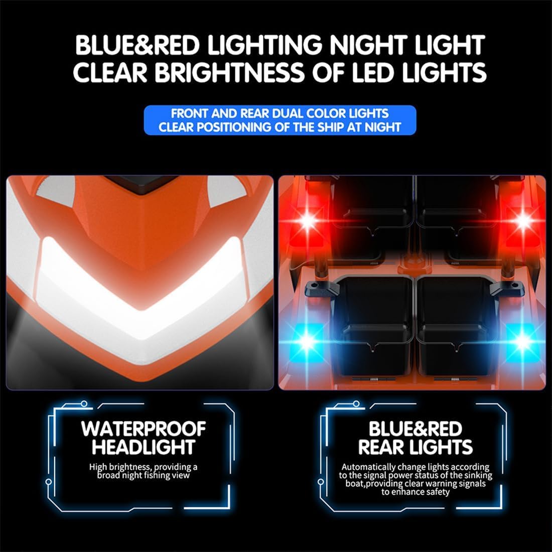 Correzione automatica del percorso: giroscopio integrato per la correzione dell'imbardata e modalità di crociera (velocità costante e navigazione con waypoint) per una pianificazione impeccabile del percorso, anche in acque difficili GPS con 160 punti di esca: memorizza fino a 4 zone di pesca e 160 punti di esca utilizzando il doppio posizionamento Beidou+GPS. Funzioni di sicurezza come il ritorno automatico con un solo tasto, il ritorno automatico in caso di batteria scarica e il recupero in caso di perdita del segnale garantiscono un funzionamento affidabile. Capacità della barca: quattro scomparti per esche controllati in modo indipendente forniscono 3 kg di esche in più punti in un unico viaggio, massimizzando l'efficienza senza ricaricare Integrazione del fish finder: le doppie antenne ad alto guadagno garantiscono un controllo remoto stabile a 500 m, monitoraggio della distanza in tempo reale e integrazione opzionale del fish finder per il massimo controllo della pesca. Doppie batterie: le doppie linee di alimentazione prevengono le interruzioni, mentre le luci di navigazione luminose (modalità fissa/lampeggiante) e gli avvisi di batteria scarica garantiscono un funzionamento sicuro e prolungato dopo il tramonto