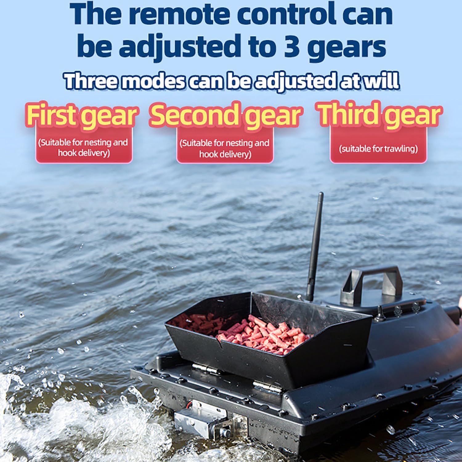 Barca da pesca ad alta potenza da 12 V con regolazione a 3 velocità e disconnessione dell'elettrovalvola a chiave per una migliore esperienza di pesca. Le caratteristiche includono telecomando da 600 metri, posizionamento GPS a 99 punti e ritorno automatico, ideale per la pesca notturna. Rilascio esca senza sforzo con un bidone allargato in grado di caricare 2,5 kg di esca. Il telecomando impermeabile e la correzione automatica dell'imbardata garantiscono una facile navigazione, rendendolo adatto sia per principianti che per pescatori esperti. Il telecomando regolabile a 3 velocità consente un uso versatile: 1a marcia per l'esca e la consegna dell'amo, la seconda marcia per la stessa con più potenza e la terza marcia per la pesca a strascico. Capace di tirare una rete da pesca di 50 metri e resiste a vento e onde a 6 livelli. Night Fishing Ready con luci di navigazione anteriori e posteriori, aumentando le possibilità di una cattura di successo. Lo schermo LCD impermeabile visualizza distanza, carica della batteria, stato della luce notturna, tasto di posizione e funzione di ritorno a un tasto. Lunga durata della batteria alimentata da una batteria rimovibile di grande capacità da 12 V (18000 mAh). Offre fino a 7 ore in 1a marcia, 5 ore in 2a marcia e 3 ore in 3a marcia. Batterie aggiuntive disponibili su richiesta.