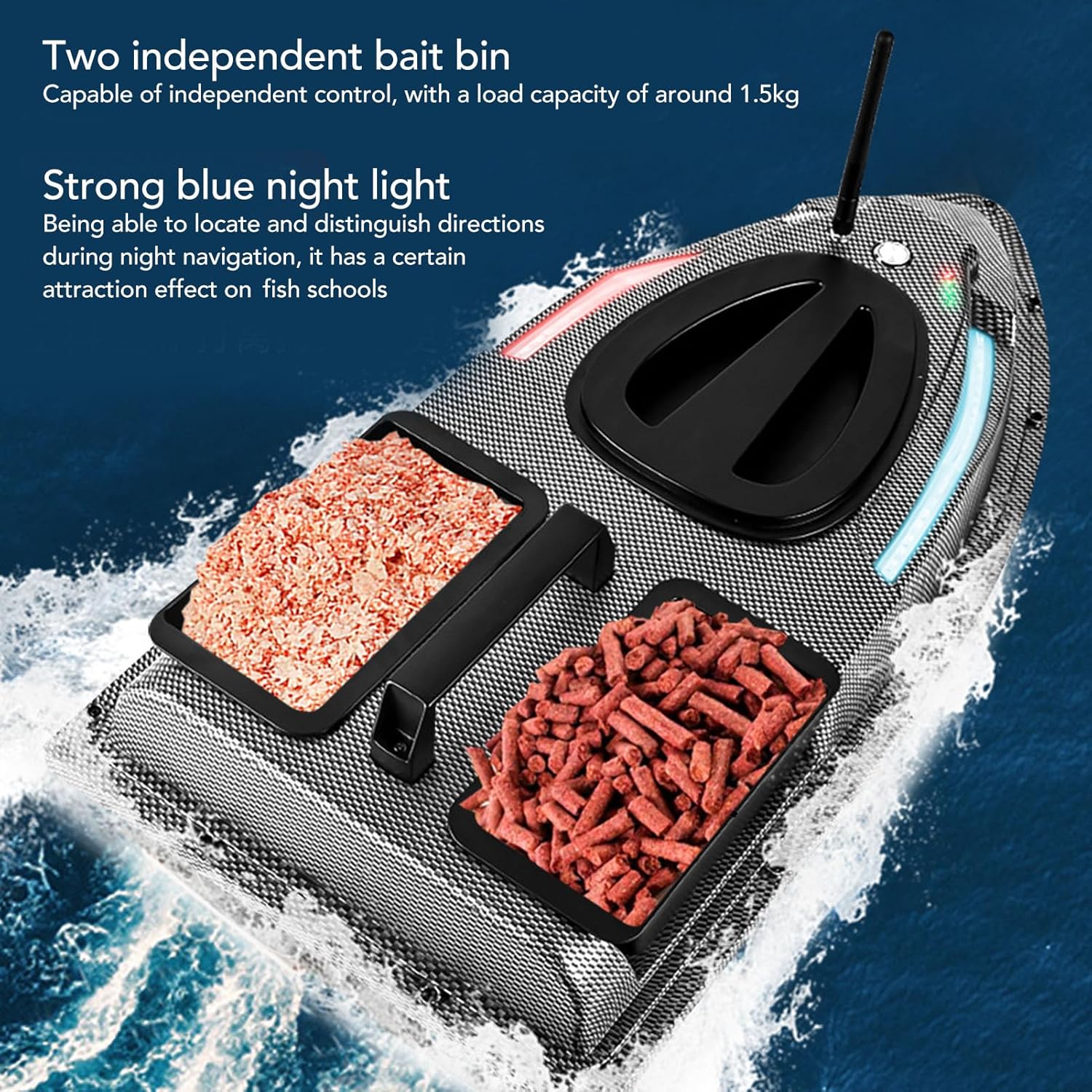 [Body ABS] Il corpo principale a barca è realizzato in materiale ingegneristico ABS da uno stampaggio di iniezione di tempo, che ha una resistenza all'impatto super forte, resistenza all'usura e graffi, resistenza al e alle onde, robusta e stabile. [Batteria ad alta capacità] dotato di batteria al litio da 12000 mAh, situata nel compartimento centrale per l'equilibrio e la stabilità, fornendo fino a 4 ore di navigazione continua con basso rumore e consumo di energia. [Dual Motors] La barca presenta potenti motori doppi, con copertura a prova di acqua, impedendo effettivamente l'interferenza dalle servries nel lavandino sull'. [Dual Bins] Controlla facilmente la nidificazione a punti fissi, particolarmente importante per gli ambienti di pesca con vaste aree idriche! Design del cestino aperto, ogni bidone 'esca può essere aperto individualmente per il nidificazione. Può sopportare il peso di circa 1,5 kg. [Controllo telecomando da 500m] Goditi il controllo senza soluzione di continuità all'interno di una gamma di 500 m con segnali di controllo remoto stabili, eliminando i vincoli dei cavi e garantendo un'esperienza stabile.