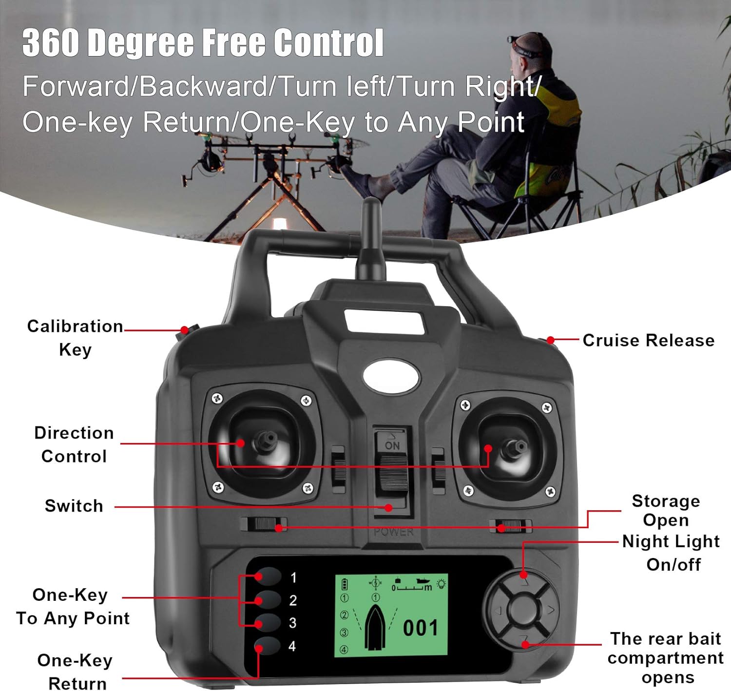 Telecomando 4G: segnale anti-interferenza potenziato da 500 m. Distanza di posizionamento del telecomando: 500 metri. Varietà d'acqua: la barca telecomandata da esterno per adulti. La barca telecomandata per adulti può navigare in sicurezza in varie acque di fiumi, laghi e mari. Funzione Cruise: barca telecomandata da esterno per adulti con funzione cruise control. Tre vani portaoggetti regolabili: tre vani portaoggetti per caricare esche diverse e puoi aprirli in modo indipendente. Coperchio sigillante: impedisce l'ingresso di liquidi nel vano all'interno delle parti danneggiate.