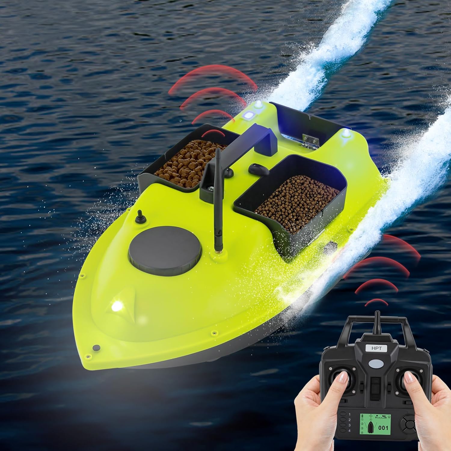 Robusto e durevole: è realizzato in ABS di alta qualità realizzato con processo di sabbiatura. Questo lo rende antigraffio, impermeabile, resistente all'usura e alla corrosione, garantendo una lunga durata Goditi la tua pesca: è alimentato da due motori 390 con una potenza di 52 W, una velocità massima di 10.000 giri/min, una velocità di guida di 5,91 ft/s e 99 punti da traina. Inoltre, i tre contenitori possono contenere fino a 4,4 libbre, che a loro volta possono essere caricati con mais, esche ed esche artificiali, consentendo un'esperienza di pesca precisa ed efficiente nelle vostre spotting Design pensato: lo scafo aerodinamico è completamente chiuso e impermeabile, il che riduce la resistenza all'acqua e rende la barca da pesca più stabile, mentre la copertura dell'elica impedisce all'esca di aggrovigliarsi nell'erba o nelle piante. Inoltre, la correzione automatica dell'imbardatura, la perdita di connessione e il ritorno automatico a batteria scarica assicurano che è possibile utilizzare in sicurezza la barca anche in ampie acque e il telecomando ti avvisa automaticamente quando il livello della batteria è basso Libera le tue mani: il design ingegnoso del telecomando può essere utilizzato in un intervallo di circa 1968 piedi per soddisfare le tue esigenze, mentre lo schermo LCD è comodo per osservare il livello di potenza, segnale segnale GPS, promemoria posizione casa, luci di navigazione barca, punto di ritorno, punto di posizionamento, distanza, e una varietà di tasti precisi, ruote, ecc. possono aiutarti. il messo, torna al Mare, posizionamento e così via Facile da trasportare: con la borsa portatile, le maniglie robuste e portatili e il peso leggero (4,4 lb.) puoi portare il dispositivo all'aperto e organizzare facilmente gli accessori del prodotto