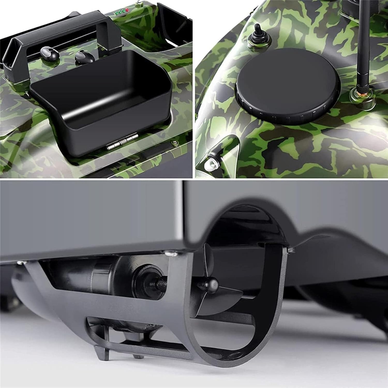 Ecoscandaglio sonar avanzato: dotato di tecnologia sonar wireless che visualizza contorni subacquei dettagliati e distribuzione dei pesci sullo schermo LCD. La profondità di rilevamento varia da 0,6 a 45 metri, rendendolo adatto per la pesca sul ghiaccio, la pesca fluviale, la pesca in mare e la pesca in kayak. Navigazione GPS di precisione: dispone di posizionamento GPS aggiornato con 16 punti di pesca programmabili. Il sistema include la funzione di ritorno a casa automatica durante la perdita di segnale, mentre il display mostra lo stato della batteria in tempo reale, la direzione della bussola e la distanza della nave. Sistema intelligente di auto-crociera: attiva il funzionamento a mani libere tramite la funzione di crociera automatica del telecomando. Il giroscopio integrato stabilizza automaticamente lo scafo e corregge la deriva, mantenendo la stabilità del percorso anche in condizioni di vento. Design robusto per tutte le stagioni: la propulsione a doppio motore con eliche protette impedisce l'impigliamento delle erbacce. Realizzato in materiale ABS resistente agli urti con alloggiamento completamente sigillato, scafo anti-collisione e luci di navigazione a LED integrate per la visibilità notturna. Sistema di batteria a lunga durata: alimentato da una batteria al litio ricaricabile da 5200 mAh che fornisce 2-3 ore di autonomia. Il rilevatore dispone di capacità di ricarica USB e batterie di backup aggiuntive possono essere aggiunte per sessioni di pesca prolungate.
