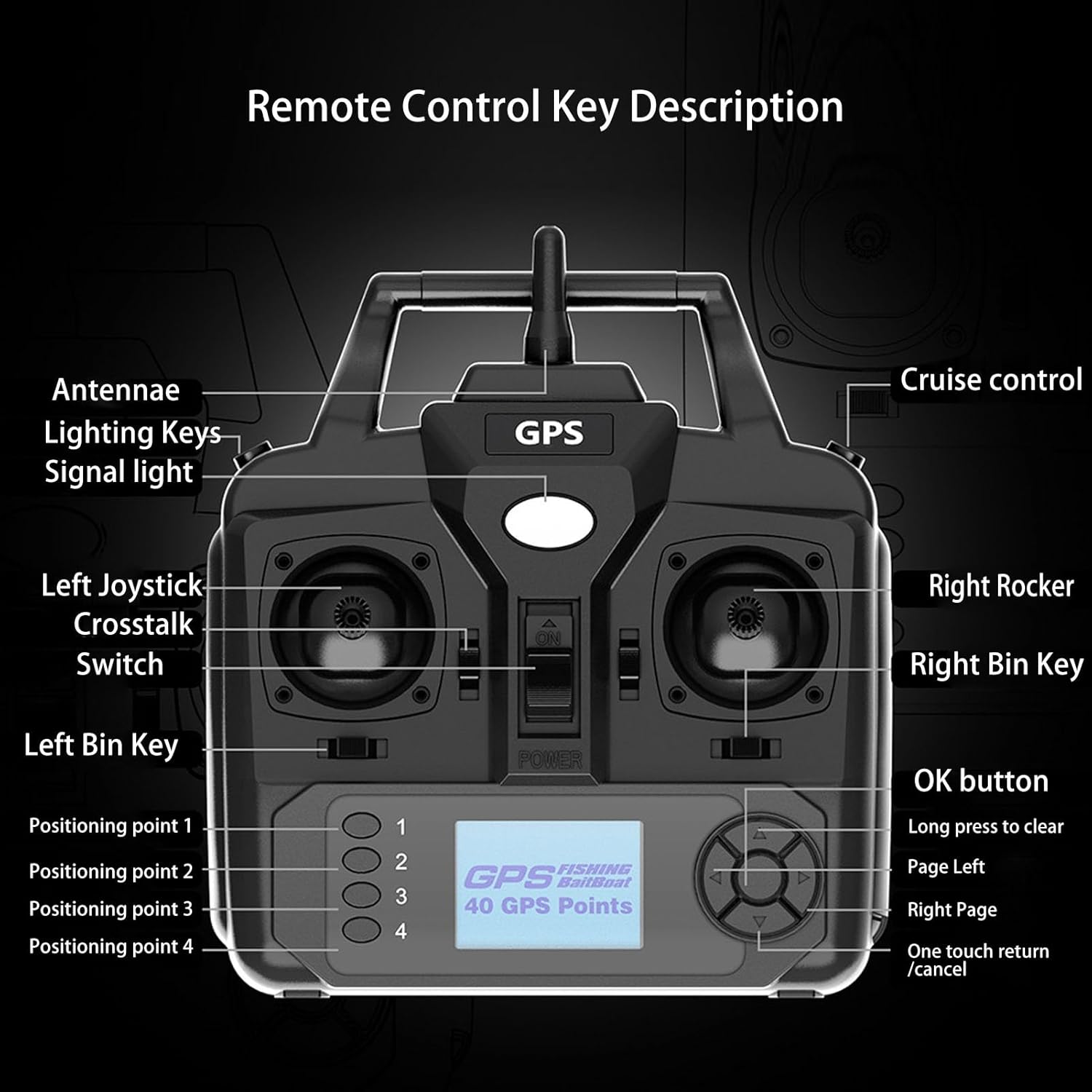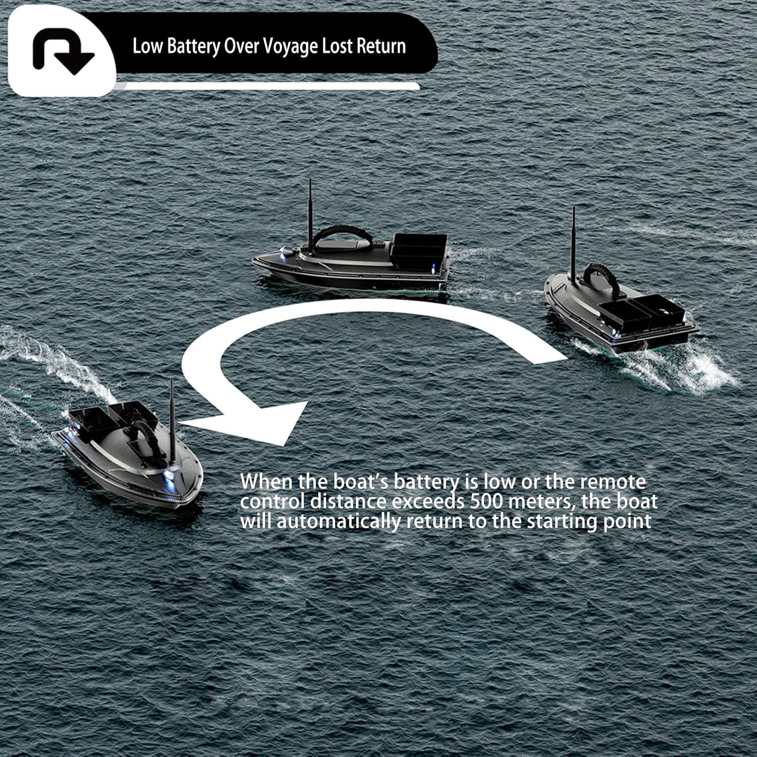 Robusto materiale ABS: il corpo principale della barca è costruito utilizzando materiale tecnico ABS con stampaggio a iniezione una tantum, fornendo un'eccezionale resistenza agli urti e all'usura. Può resistere a forti venti e onde, garantendo l'impermeabilità per evitare problemi di perdite ed è in grado di funzionare normalmente con di forza da 7 a 8. Luce notturna di governo: le luci di navigazione su entrambi i lati della barca indicano le istruzioni di governo dal telecomando con i corrispondenti messaggi di luci rosse. Ciò consente agli operatori di identificare la direzione 'imbarcazione in base alle luci, mentre il faro luminoso aiuta a riconoscere la direzione di navigazione 'imbarcazione durante l'utilizzo a lunga distanza. Tramogge a doppia esca: il design a doppia tramoggia per esca consente la costruzione precisa di nidificazioni in vasti ambienti di pesca. Ogni tramoggia può essere utilizzata separatamente, con una capacità di carico di circa 1,5 kg. 40 punti di memoria: il peschereccio RC supporta 40 punti di posizionamento di memoria per la crociera automatizzata, consentendo un funzionamento conveniente per il lancio preciso 'esca e il ritorno automatico. Dispone di recinzione elettronica con un limite di distanza di 150 metri per maggiore controllo e sicurezza. Monitoraggio del telecomando: lo schermo LCD sul telecomando mostra la capacità della batteria 'imbarcazione. Un allarme "bip" intermittente avvisa gli utenti di richiamare l'imbarcazione per la sostituzione della batteria quando la potenza 'imbarcazione è bassa e le luci lampeggiano, evitando la perdita di controllo o la disconnessione. Se la barca raggiunge il livello di potenza più basso, la barca telecomandata tornerà automaticamente al punto di partenza.