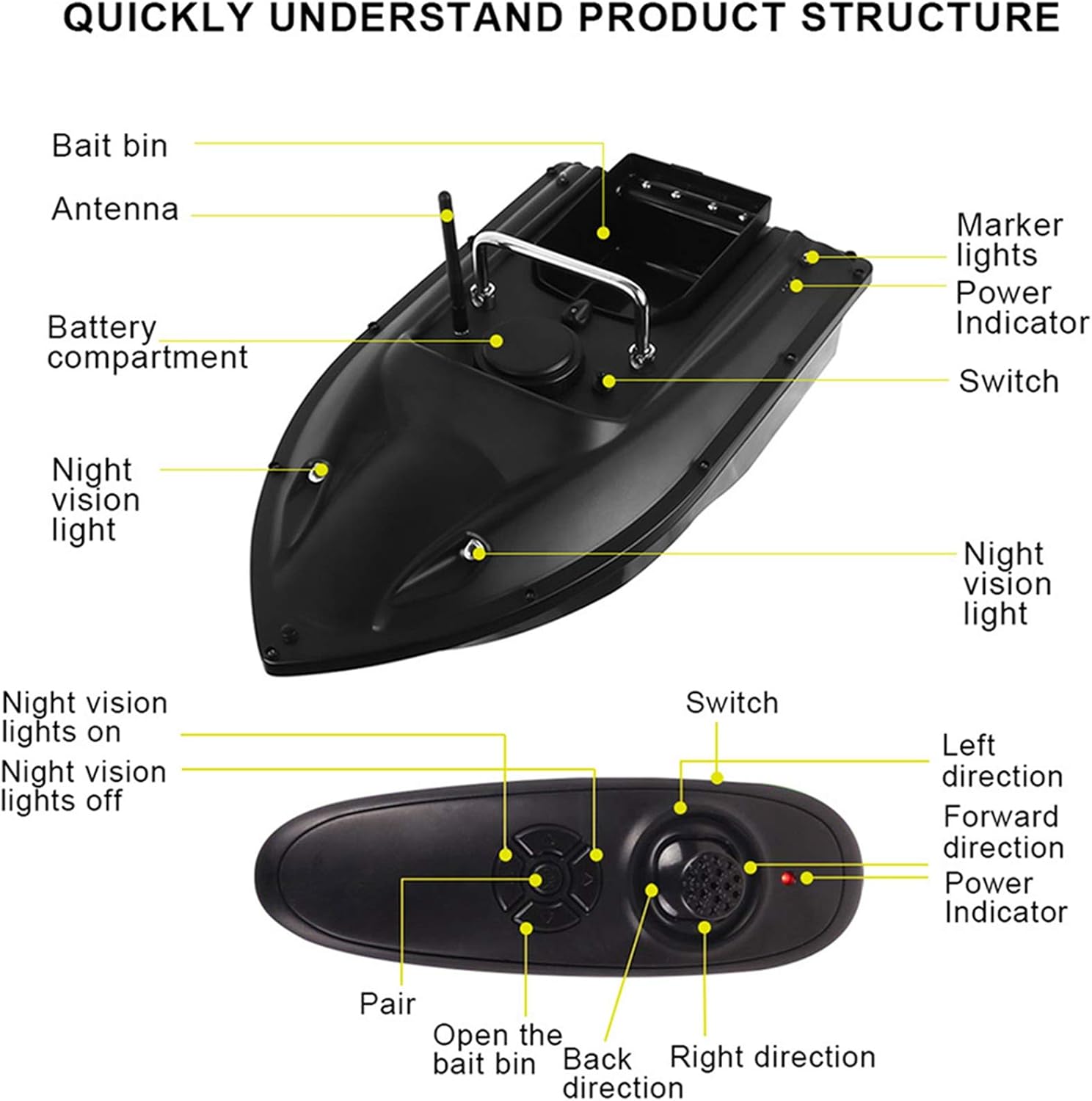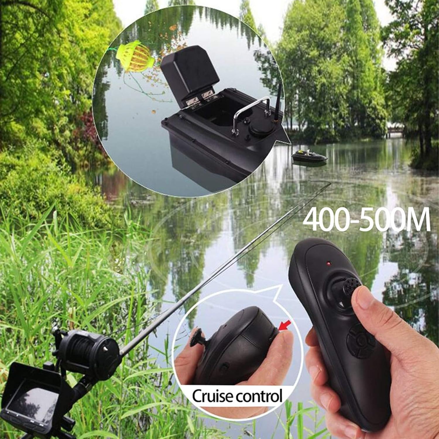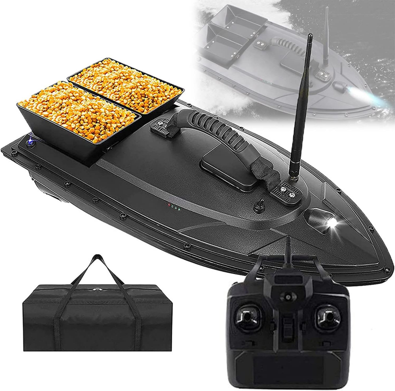 TELECOMANDO: Il raggio d'azione della barca esca è di 400-500 metri. Può essere posizionata in stagni e laghi. Il segnale del telecomando è durevole e stabile, senza interferenze, e gode del comfort di una tecnologia illimitata. DESIGN ECCELLENTE: batteria integrata da 5200 mAh, durata della batteria di 2-3 ore, velocità di ricarica rapida, grande capacità del contenitore dell'esca, può contenere esche da 1,5 kg, 2 fari per la pesca notturna. MATERIALE PREFERITO: lo scafo è realizzato in materiale ABS rigido di alta qualità, impermeabile e sicuro, robusto e durevole. DESIGN A DOPPIO MOTORE: doppi motori sportivi ad alta efficienza, eliche a tre pale migliorate e potenziate, controllo impeccabile, potente funzione di pop-up durante il posizionamento dei nidi e spegnimento automatico del motore per evitare interferenze con i pesci. IL REGALO PERFETTO: può essere utilizzato non solo come barca esca per gli amanti della pesca, ma anche come barca telecomandata per far giocare i bambini.
