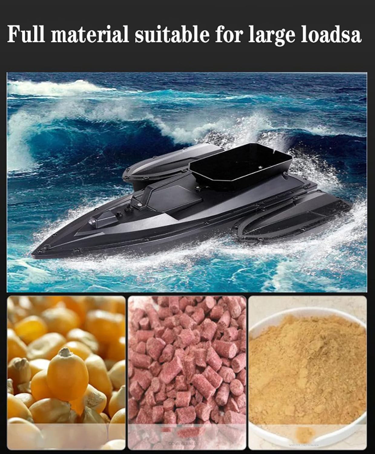 【Ricezione del segnale a 500 m】 In caso di interferenza del segnale, la distanza del telecomando è di 500 metri, puoi portare l'esca nel fitto banco di pesci, non preoccuparti del problema della scarsa distanza del telecomando. 【Funzionamento tramite telecomando】 Dispone di funzione di controllo della velocità di crociera, controllo della direzione, doppio motore ad alta velocità, velocità di crociera fissa, controllo indipendente di 1 contenitore per esche e può controllare le luci. 【Controllo indipendente dell'esca】 I contenitori per esche possono essere controllati in modo indipendente, possono contenere esche diverse, evitando il rilascio una tantum di esche diverse e realizzando un rilascio multiuso. 【Design della luce di navigazione notturna】 Comodo da usare di notte o nelle giornate nuvolose, il design della luce, il design della luce bicolore con controllo a lunga distanza, determinano chiaramente la posizione della nave e forniscono un buon ambiente di illuminazione. 【Design monoblocco】 Il corpo principale della fusoliera è realizzato in un guscio rigido in ABS, completamente chiuso, impermeabile e resistente all'umidità, con forte resistenza al vento, baricentro stabile e non teme vento e onde.