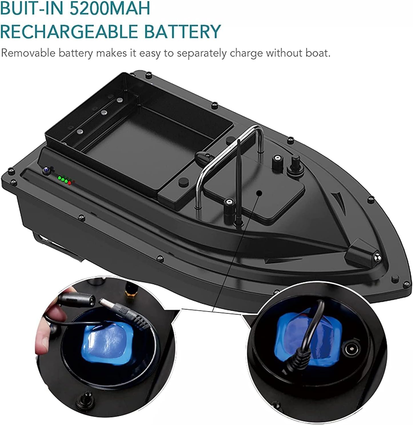 【Ricezione del segnale di 500 m】: in caso di interferenza del segnale, la distanza del telecomando è di 500 m, che può portare l'esca a un denso banco di pesci senza preoccuparsi del problema della scarsa distanza del telecomando. La batteria è da 7,4 V e 5200 V mA, che può essere utilizzata ininterrottamente per circa 3 ore! ! ! 【GPS Return to Home】: la barca esca ha la funzione di crociera GPS. Il telecomando LCD può essere impostato con 1 posizione di partenza e 3 punti di ancoraggio e la barca esca può spostarsi avanti e indietro tra i 3 punti di ancoraggio. Se il segnale viene perso o la carica della batteria è scarica, la nave tornerà automaticamente alla sua posizione originale dopo 15 secondi e lo schermo del telecomando mostrerà la carica della batteria della nave esca, la bussola e il numero di metri navigati! 【Dispositivo di stoccaggio dell'esca di grande capacità】: la barca per il lancio di esche adotta una struttura bimotore. La barca porta esche ha un contenitore di grande capacità con un carico di circa 1,5 kg. La barca esca è stampata a iniezione con materiale ABS di alta qualità, completamente incapsulata, impermeabile e resistente all'umidità, scafo grande, baricentro stabile, non teme il ventos e le onde. 【Luci di navigazione notturna controllabili】: le luci anteriori e posteriori a due colori possono essere controllate a distanza, il che può determinare chiaramente la posizione della nave da una lunga distanza e fornire un buon ambiente di illuminazione nei giorni nuvolosi e nella notte. Determinare il punto di ancoraggio durante la notte. La luce dell'esca può essere regolata su e giù, il che è conveniente per l'esca da pesca notturna e attira l'attenzione dei pesci. 【Ideale barca per esche telecomandate】: la barca per esche telecomandate è una scelta eccellente e uno strumento conveniente per la pesca in fiumi, laghi o acque poco profonde. Con funzioni di rotazione avanti/indietro, sinistra e destra e esca, adatto per appassionati di pesca e pescatori.