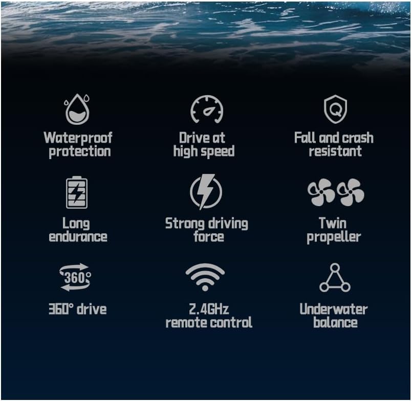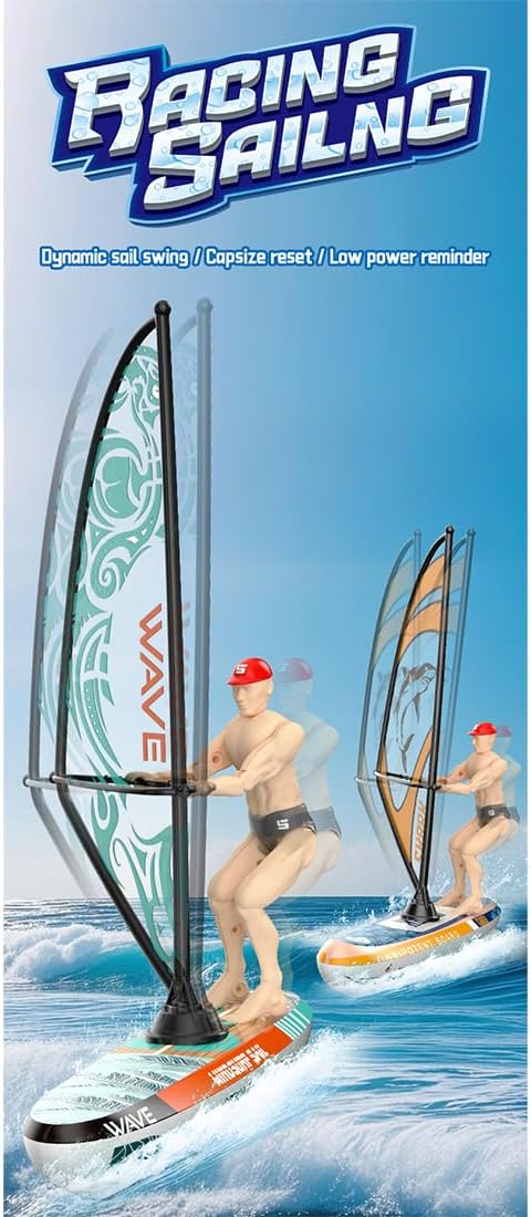 Design avanzato anti-capsize e stabilità: dotato di un innovativo sistema di bilanciamento fisico e guscio stampato UV, questa barca da surf RC mantiene una perfetta stabilità anche durante le curve strette. Il design inaffondabile assicura che non si capovolga mai, rendendolo ideale per laghi, piscine e vasche da bagno, mentre la grafica vibrante aggiunge fascino visivo Batteria a lunga durata e prestazioni efficienti: dotata di una batteria al litio ad alta velocità, questa barca RC offre fino a 15 minuti di autonomia continua con una singola carica. Supporta la ricarica rapida e offre potenti raffiche per le modalità a doppia velocità (alta/bassa), consentendo un emozionante sterzo avanti, retromarcia e preciso sinistra/destra in acqua Azione realistica di surf: la figura animata surfista incorporata oscilla la vela in un movimento realistico, creando un effetto di surf accattivante, migliorando il divertimento per gli adulti Funzionamento sicuro e facile da usare: progettata con dimensioni compatte (22 x 4,5 x 23 cm) e un interruttore di alimentazione attivato dall'acqua che si interrompe automaticamente quando viene rimossa dall'acqua, questa barca garantisce la sicurezza. È perfetto per vasche da bagno interne, piscine e laghi all'aperto, offrendo un gioco senza preoccupazioni con una facile funzionalità RTR (Ready-to-Run) Telecomando esteso e durata: con una distanza remota di circa 30 metri e funzioni di controllo complete tra cui velocità selezionabili, questa barca RC impermeabile consente una navigazione senza interruzioni. La sua struttura robusta e la funzione anti-capsize lo rendono un regalo affidabile per gli adulti