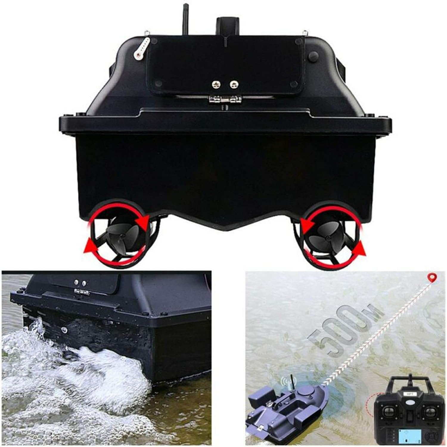 Barca Esca da Pesca, Barca Esca telecomandata da 500 m, fishfinder a Doppio Motore, Supporta la correzione Automatica di Crociera/Ritorno/Rotta.