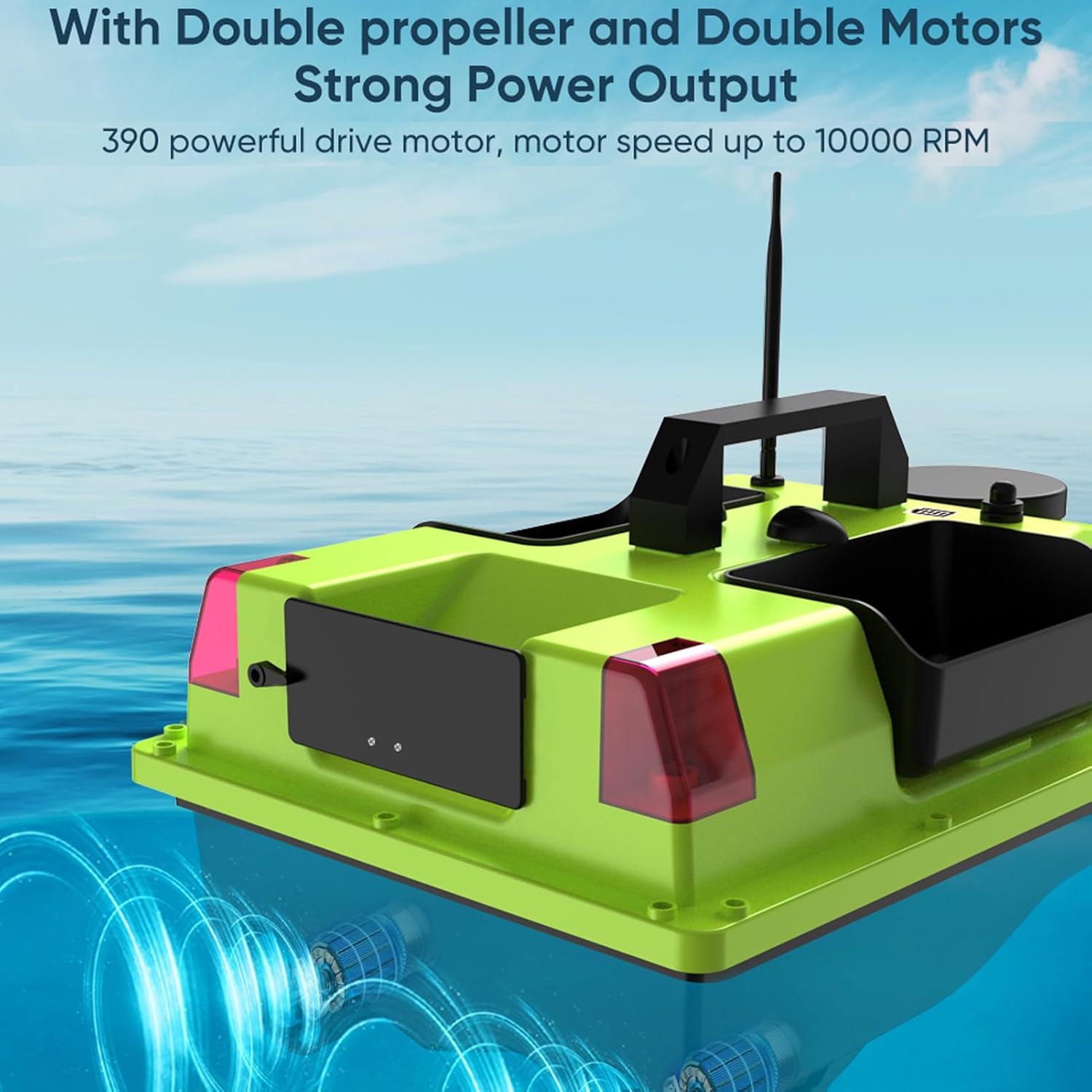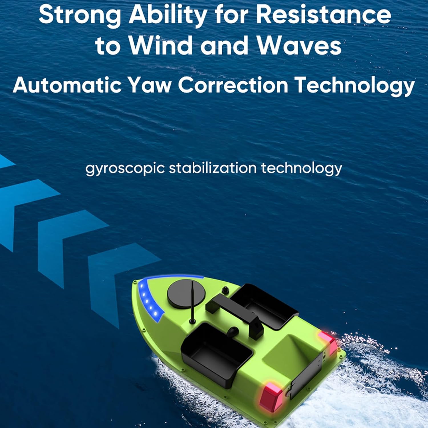 Barca da pesca illuminata: le luci a LED a 7 colori offrono una maggiore visibilità di notte, facendo brillare l'intero corpo. Navigazione GPS: impostare fino a 99 punti esche con la funzione GPS, permettendoti di tornare facilmente ai tuoi punti preferiti. Remoto controllato: gestire la barca fino a 500 metri di distanza senza lasciare la riva, ottimo per la pesca. Navigazione automatica: mantiene una rotta dritta anche in acque difficili con rotte corrette automatiche. Design resistente alle intemperie: il design completamente sigillato garantisce la durabilità in condizioni meteorologiche rigide e acque turbolente.