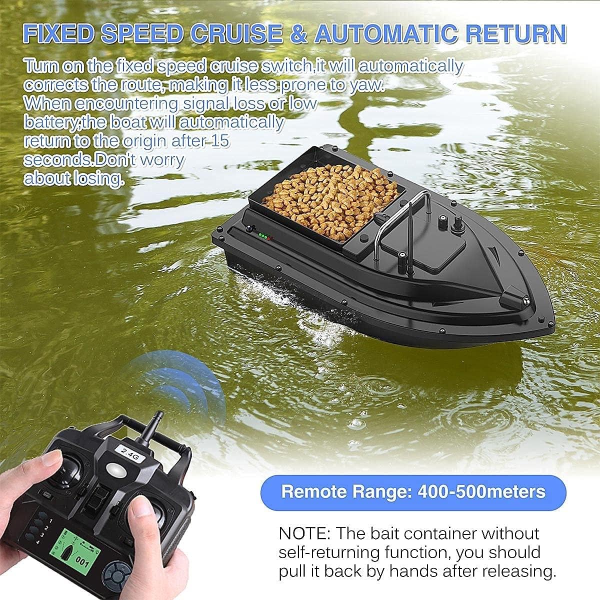 【Ricezione del segnale di 500 m】: in caso di interferenza del segnale, la distanza del telecomando è di 500 m, che può portare l'esca a un denso banco di pesci senza preoccuparsi del problema della scarsa distanza del telecomando. La batteria è da 7,4 V e 5200 V mA, che può essere utilizzata ininterrottamente per circa 3 ore! ! ! 【GPS Return to Home】: la barca esca ha la funzione di crociera GPS. Il telecomando LCD può essere impostato con 1 posizione di partenza e 3 punti di ancoraggio e la barca esca può spostarsi avanti e indietro tra i 3 punti di ancoraggio. Se il segnale viene perso o la carica della batteria è scarica, la nave tornerà automaticamente alla sua posizione originale dopo 15 secondi e lo schermo del telecomando mostrerà la carica della batteria della nave esca, la bussola e il numero di metri navigati! 【Dispositivo di stoccaggio dell'esca di grande capacità】: la barca per il lancio di esche adotta una struttura bimotore. La barca porta esche ha un contenitore di grande capacità con un carico di circa 1,5 kg. La barca esca è stampata a iniezione con materiale ABS di alta qualità, completamente incapsulata, impermeabile e resistente all'umidità, scafo grande, baricentro stabile, non teme il ventos e le onde. 【Luci di navigazione notturna controllabili】: le luci anteriori e posteriori a due colori possono essere controllate a distanza, il che può determinare chiaramente la posizione della nave da una lunga distanza e fornire un buon ambiente di illuminazione nei giorni nuvolosi e nella notte. Determinare il punto di ancoraggio durante la notte. La luce dell'esca può essere regolata su e giù, il che è conveniente per l'esca da pesca notturna e attira l'attenzione dei pesci. 【Ideale barca per esche telecomandate】: la barca per esche telecomandate è una scelta eccellente e uno strumento conveniente per la pesca in fiumi, laghi o acque poco profonde. Con funzioni di rotazione avanti/indietro, sinistra e destra e esca, adatto per appassionati di pesca e pescatori.