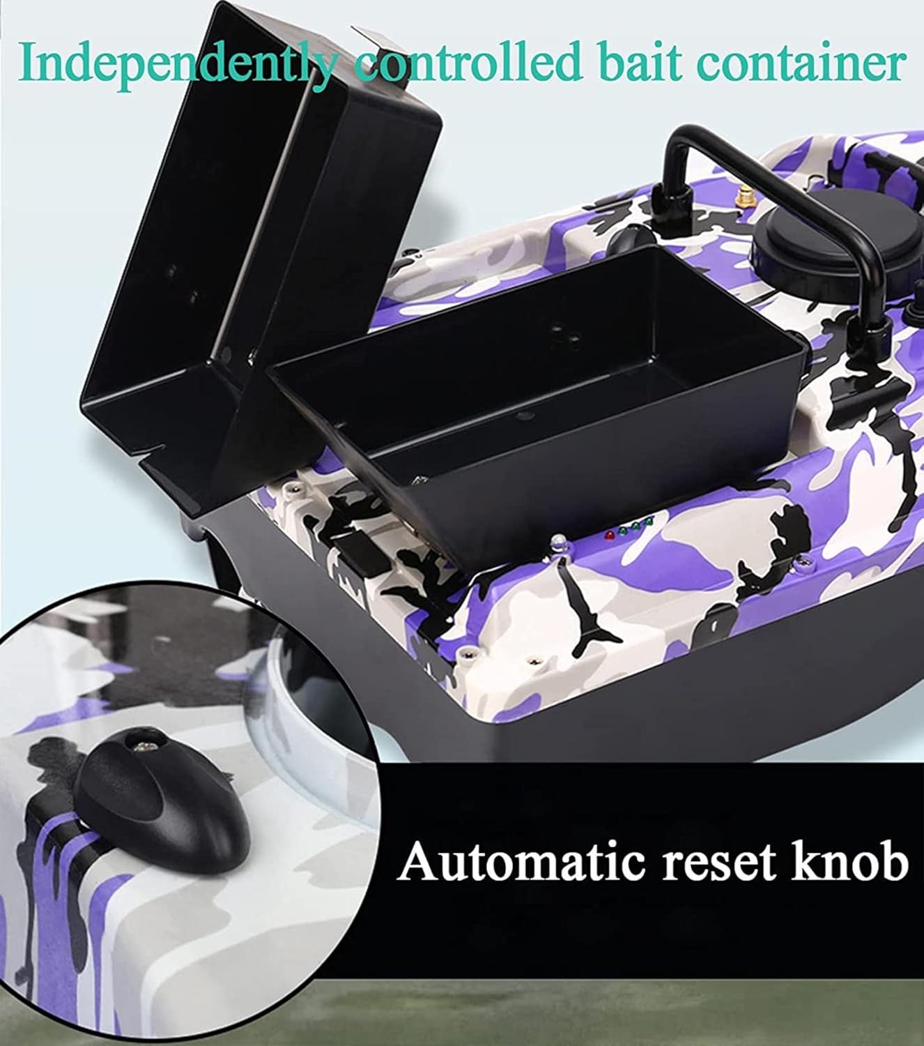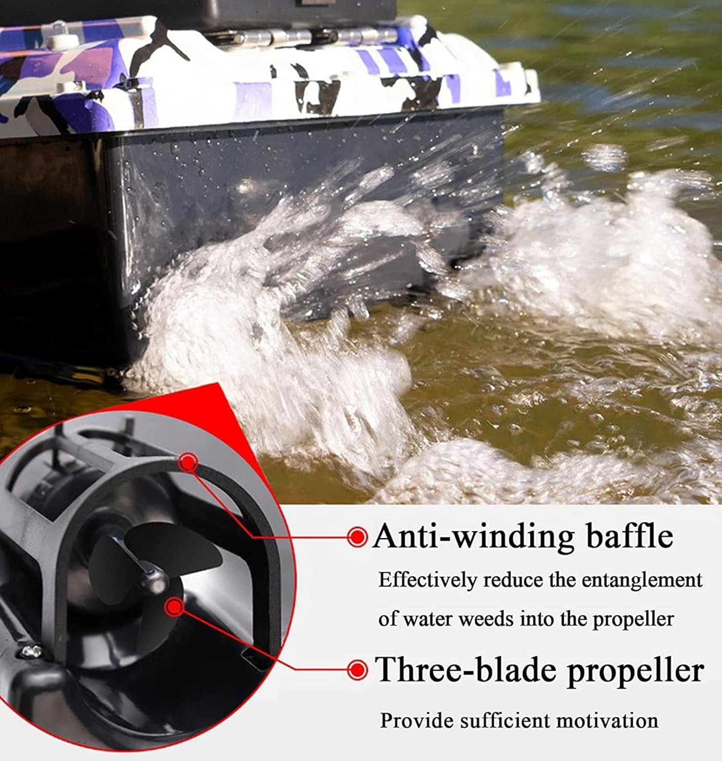 (Barca di alimentazione per la pesca): la barca di alimentazione intelligente utilizza una funzione di crociera per auto per portare esche e ami per la pesca o per posizionare l'esca nelle profondità del lago. Spesso porta sorprese inaspettate per gli appassionati di pesca. Questa è una scelta ideale per i pescatori. (Segnale di controllo remoto wireless): la barca esca può navigare liberamente entro 500 metri dai segnali wireless. La barca feed è dotata di un giroscopio per garantire che la barca calibri automaticamente la rotta durante la navigazione, per evitare eccessivi gay dovuti a vento e onde durante la navigazione. (Contenitore indipendente per esche da pesca): la barca esca RC ha 2 contenitori indipendenti per esche che possono assorbire 2,0 kg di esche diverse come saldature di mais, esche in pellet ed esche miste, ecc. Il contenitore posteriore per esche ha un design anti-intrattenimento. Ciò semplifica l'uso di ami da pesca e reti da pesca e migliora significativamente l'efficienza della pesca. (Eccellente design dettagliato): 1. La barca esca ha due motori e due eliche, che possono conferire alla barca una forza potente e navigare silenziosamente. 2. La barca di alimentazione è dotata di visione notturna a LED, anche di notte è possibile vedere chiaramente la posizione della barca da lontano. 3. Fusoliera completamente chiusa, resistente e impermeabile. Può essere utilizzata anche per la pesca nei giorni di pioggia. (Ricarica della batteria al litio): la barca di alimentazione è alimentata da una batteria al litio ricaricabile da 5200 mAh. Può essere caricata separatamente ed è facile da installare. Dopo ogni carica completa, la barca esca può essere utilizzata per circa 2-3 ore, il che è molto adatto per la pesca alla carpa.