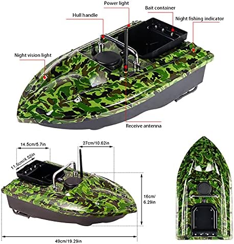 Lo scafo è progettato con doppi motori ed eliche a tre pale, con elevata potenza e forte forza di trazione, con un carico di 1,5 kg. La scatola dell'esca a poppa ha una fessura a forma di amo per evitare che l'amo cada durante il trasporto. La prua è dotata di una luce di navigazione notturna controllabile, che può essere utilizzata di notte e nelle giornate nuvolose Il corpo principale dello scafo dell'Intelligent Fishing Bait Boat è realizzato con materie prime ABS di alta qualità, con un design dello scafo completamente chiuso. Lo scafo è grande, il centro è stabile e non è facile capovolgersi. Può essere utilizzato in tutti i tipi di acque come laghi e fiumi L'impugnatura del telecomando di Wireless Smart Bait Boat ha un display LCD, la distanza, la direzione, il posizionamento, l'alimentazione e le luci saranno chiaramente visualizzati sullo schermo e il posizionamento è accurato Le nostre barche esca per la pesca alla carpa sono dotate di una funzione di cruise control intelligente, che controllerà automaticamente quando la direzione cambia. Quando la batteria è troppo scarica o il segnale è scollegato, tornerà sullo stesso percorso, evitando l'arresto per mancanza di alimentazione durante il tragitto. Servizio: Se avete domande su questo prodotto, non esitate a contattarci, vi risponderemo entro 24 ore!