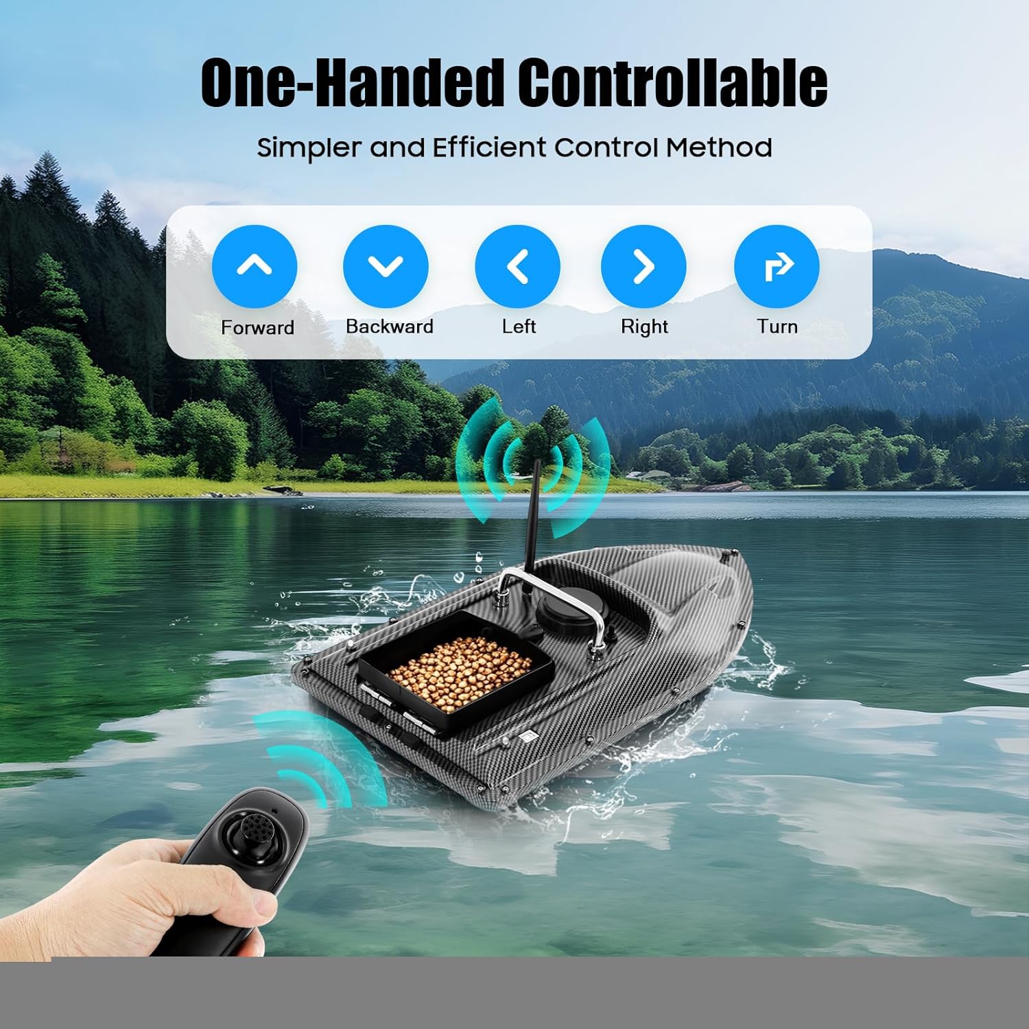 Distanza di controllo remoto lunga: con una distanza di telecomando ultra lunga di 500 m, il segnale della barca è forte. È possibile controllare facilmente la distanza con il telecomando. Forte capacità di carico: con un peso di carico di 1,5 kg/3,31 lbs, la barca esca da pesca può contenere molte esche contemporaneamente. Porta convenienza al processo di pesca. Posizionamento della luce notturna: la barca dispone di una speciale luce LED per la pesca notturna. Rende più facile trovare la zona di pesca di notte. One Drop: questa barca da pesca è un tipo di secchio ribaltabile con un unico contenitore. Puoi semplicemente capovolgere l'esca e lasciarla cadere direttamente quando hai raggiunto il tuo obiettivo. È molto facile e comodo da usare. Scafo aerodinamico: lo scafo aerodinamico della barca non è solo bello da vedere, ma assicura anche che funzioni più agevolmente e più velocemente in acqua.