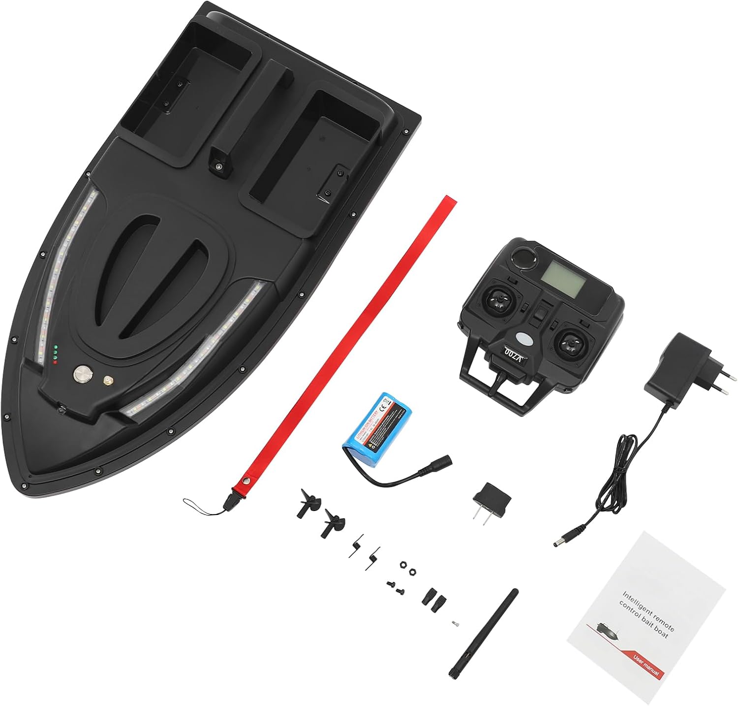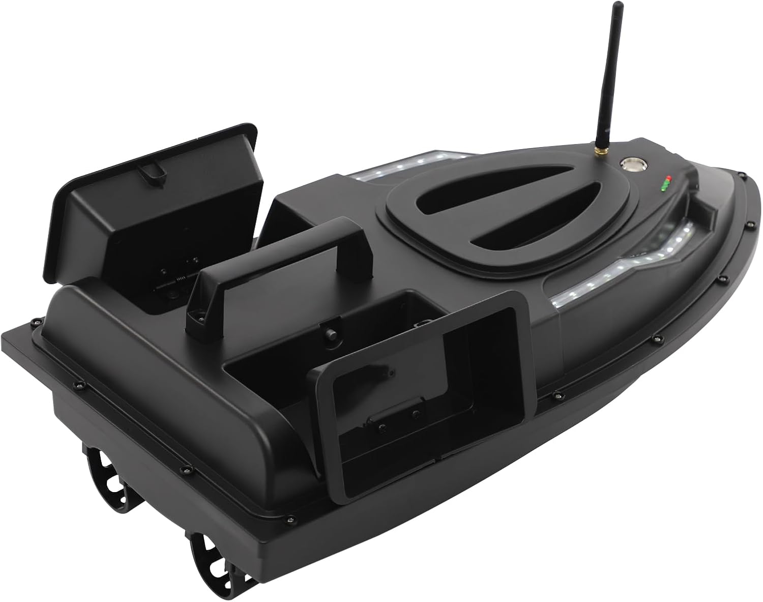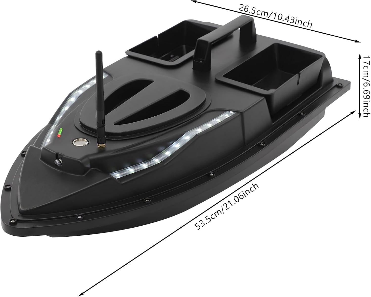Durevole: il corpo principale della barca con esche è realizzato in ABS ed è realizzato con stampaggio a iniezione. È resistente agli urti, all'acqua, all'usura, antigraffio e robusto e garantisce una lunga durata. Goditi la tua pesca: alimentato da due motori, la mangiatoia può guidare a una velocità fino a 3,36 miglia all'ora. La fusoliera aerodinamica è stata trattata impermeabile ed è molto resistente al vento, in modo che possa ancora guidare anche a 3-4 livelli di vento. Ha un controllo fisso della velocità che gli consente di guidare in linea retta a velocità costante fino al luogo di pesca desiderato, lasciando le mani libere. Facile da usare: il segnale del telecomando è stabile e ti aiuta a controllare le navi entro un raggio di 1640 piedi senza ostacoli, mentre il display LCD ti rende più facile osservare il corpo della barca e il livello della batteria del telecomando, rendendo il funzionamento più libero e conveniente. Le luci lampeggianti rosse su entrambi i lati della barca e i fari di ricerca a prua consentono di riconoscere la direzione di guida e di rotazione della barca e ampliano la tua area di visione durante la pesca notturna. Forte capacità di resistenza: la batteria ricaricabile di grande capacità (5200 mAh) ha una lunga durata e, quando è completamente carica, la barca può guidare ininterrottamente per 2 ore per soddisfare le vostre esigenze di pesca. Inoltre, i due contenitori per esche possono contenere fino a 3,31 libbre di esche, riducendo la frequenza di rifornimento delle esche e garantendo una battuta di pesca di successo. Design premuroso: ha un promemoria di perdita di contatto e un promemoria a basso consumo energetico, in modo da poter richiamare la barca per sostituire la batteria in tempo per evitare che la barca si spenga fuori controllo. La velocità del motore può essere regolata finemente per migliorare efficacemente il problema dell'imbardatura, rendendo la barca più stabile da usare. Il giroscopio integrato corregge automaticamente la velocità del motore e impedisce l'imbardata per garantire che la barca possa navigare in linea retta durante il vento, le onde e il carico.