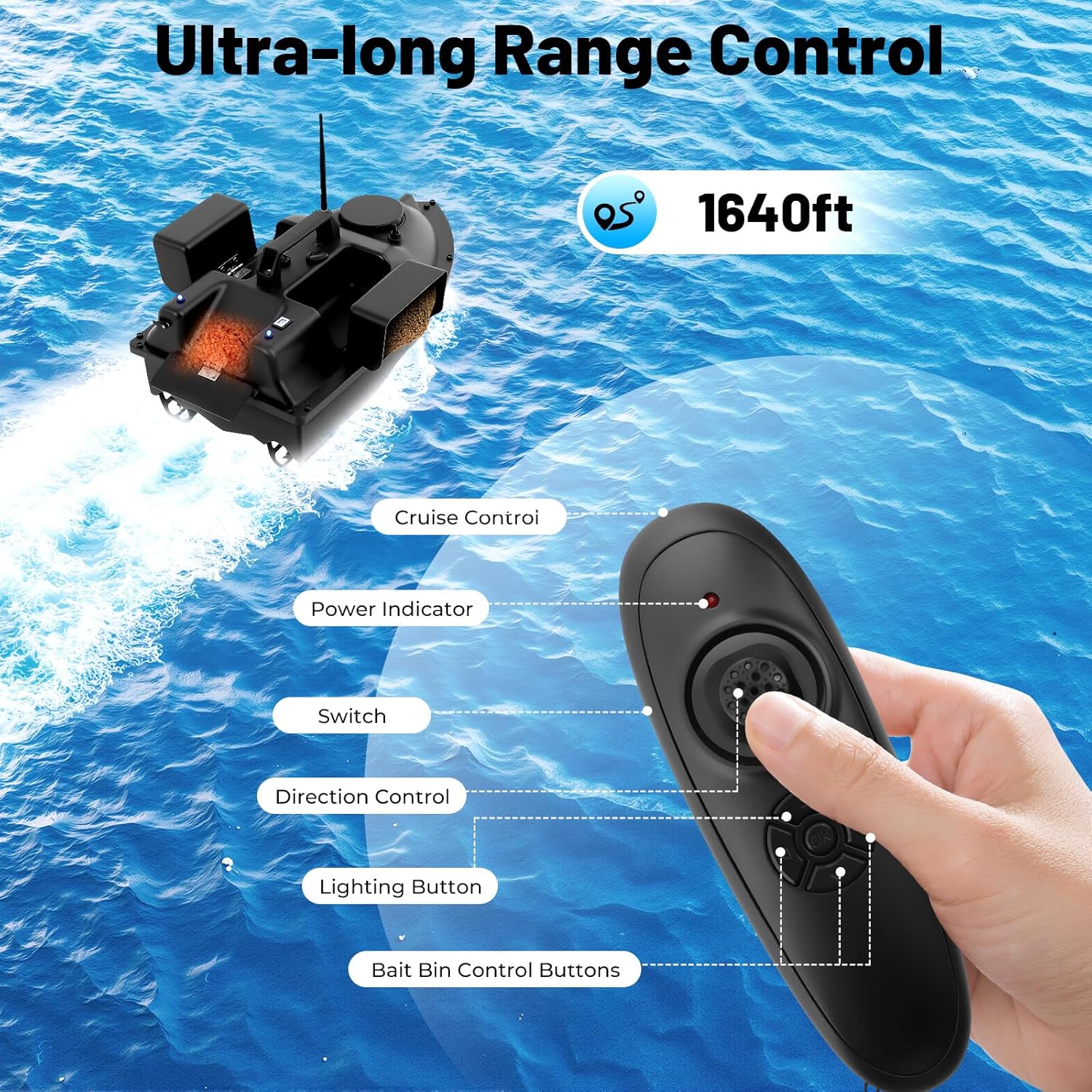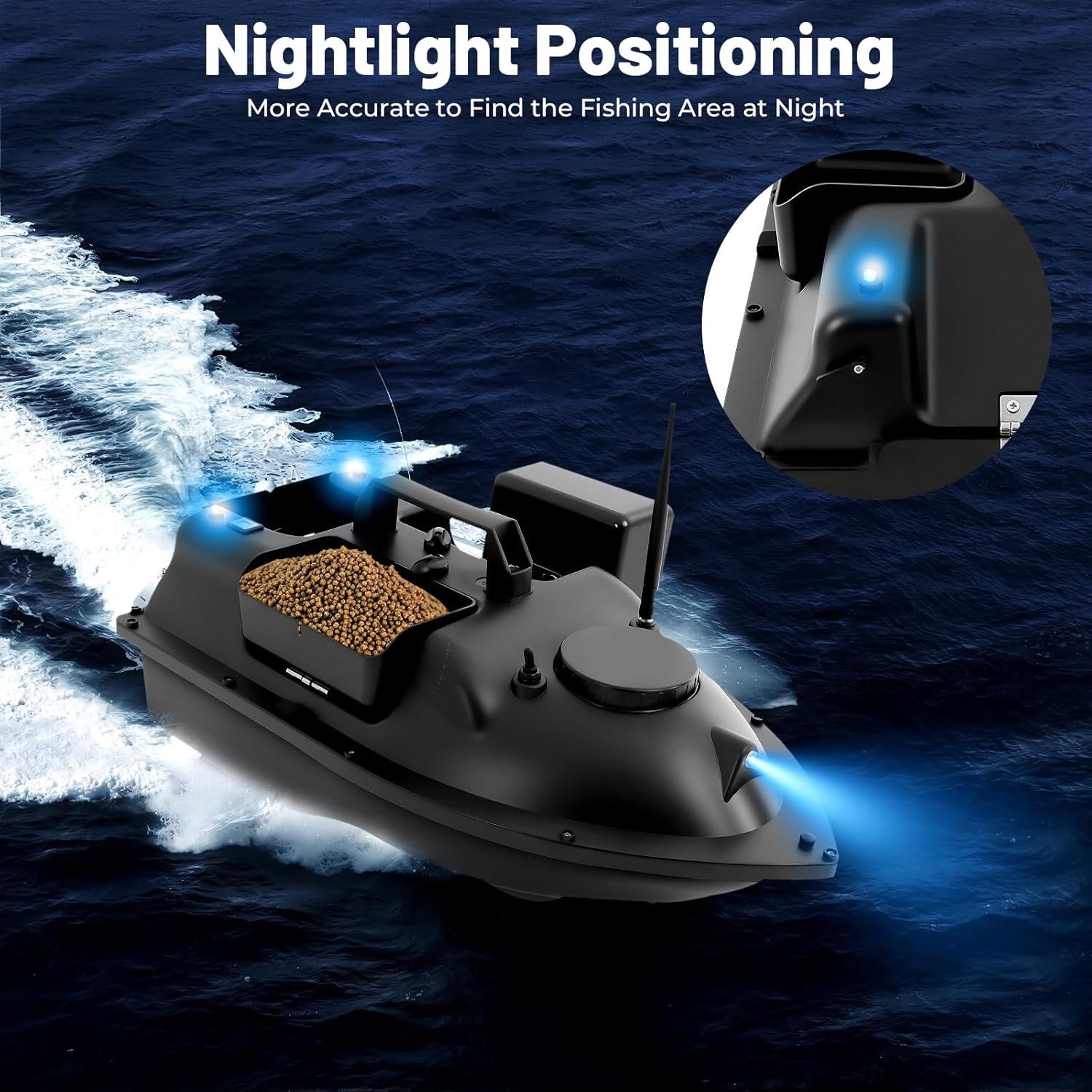 Telecomando da 500 m e precisione: questa barca da pesca con portata di 500 m offre esche precise al millimetro nei luoghi di pesca, anche nei grandi laghi. Il pulsante Cruise Control mantiene la rotta stabile. 【2 kg di capacità & telecomando con LED】 Con telecomando è possibile posizionare fino a 2 kg di esche/gancio. La luce LED integrata rende la barca da pesca visibile di notte. 【5200 mAh per 2 ore di funzionamento continuo】 La potente batteria aziona l'esca per 2 ore senza sosta. L'elica a 3 pale consente di risparmiare energia ad alta propulsione. Barca per esche in ABS per condizioni difficili: l'esca in ABS resistente agli urti resiste alla forza del vento 3-4. Lo scafo aerodinamico garantisce una guida veloce nonostante il carico di esca di 2 kg. 【 Anti-Tangle Baffle】L'elica della barca è circondata da piastre di impatto che possono ridurre efficacemente il fenomeno del groviglio delle piante acquatiche.