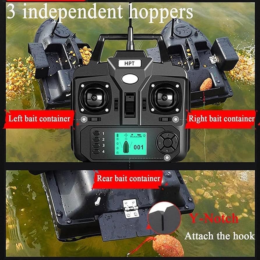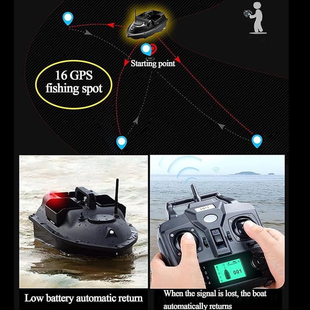 【FUNZIONE DI CROCIERA AUTOMATICA】Se la barca esca si muove in avanti, la crociera automatica può essere attivata tramite il telecomando in modo che la barca possa procedere dritta a velocità costante e le mani siano libere. Inoltre, la barca di alimentazione è dotata di un giroscopio in grado di stabilizzare la fusoliera e correggere automaticamente l'avidità in modo che la barca proceda dritta nel vento e nelle onde. 【CONTENITORE PER ESCA CON GRANDE CAPACITÀ】La barca RC ha 3 contenitori per esca con espulsione indipendente che possono assorbire 2 kg di esche diverse come esche di mais, esche in pellet ed esche miste, ecc. Il contenitore per esca posteriore ha un design anti-intrattenimento che facilita l'uso di ami e reti da pesca e migliora significativamente l'efficienza della pesca. 【GPS E RICERCA PESCI】La nostra barca da pesca è dotata di telecomando GPS e fish finder. Tra questi, è possibile contrassegnare il telecomando GPS entro 500 metri e contrassegnare fino a 16 punti focali, mentre la barca da pesca può variare tra 16 punti focali. Il fish finder può essere utilizzato entro un raggio di 100 metri e può riconoscere la distribuzione di sciami di pesci in profondità da 0,6 ma 36 m. 【DESIGN ECCELLENTE DEI DETTAGLI】1. La barca da pesca telecomandata ha due motori e due eliche, l'alloggiamento dell'elica può bloccare efficacemente l'aggrovigliamento delle piante acquatiche.2. La barca di alimentazione è dotata di luci LED e luci per la pesca con esche nella parte anteriore e posteriore, con le quali la barca può essere determinata a lunga distanza.3. Lo stivale Fischkader è costituito da materiale ABS, fusoliera aerodinamica, forte resistenza agli urti e resistenza 【BATTERIA AL LITIO AD ALTE PRESTAZIONI】La barca di alimentazione è azionata da una batteria da 7,4 V-5200 mAh. Se la barca di alimentazione ha solo una spia di controllo verde, è possibile rimuovere la batteria per caricarla separatamente. Dopo ogni carica completa, può essere utilizzata per circa 2-3 ore. Se si verifica una perdita di segnale o una batteria scarica durante la pesca, la barca di alimentazione torna automaticamente alla posizione di partenza impostata.