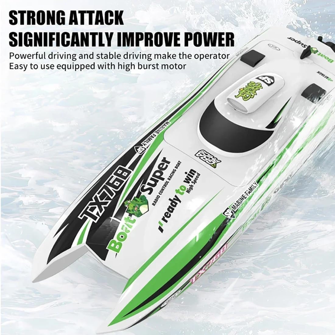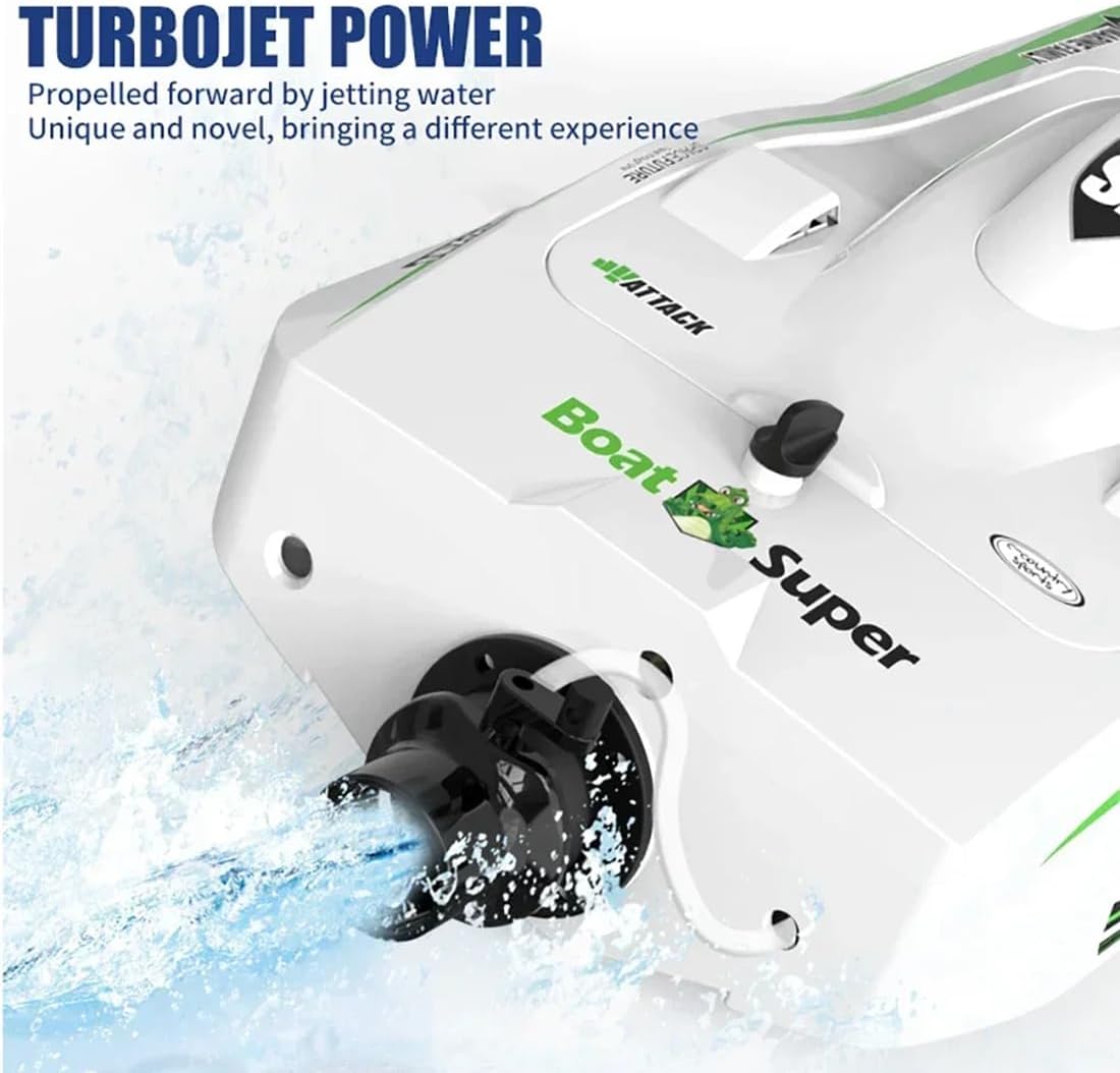 Velocità alimentata a getto 30+ km/h: prova un'accelerazione emozionante con un sistema di propulsione a getto a vortice che offre velocità superiori a 30 km/h per un'emozionante azione di corse acquatiche. Motore brushless e raffreddamento ad acqua: dotato di un motore brushless 2212 e di una tecnologia avanzata di raffreddamento ad acqua per prestazioni potenti e durevoli con minore usura. Telecomando stabile da 2,4 G: goditi un controllo senza interferenze fino a 250 metri con acceleratore proporzionale completo, offrendo una gestione fluida e precisa del motoscafo. Struttura resistente e impermeabile: scomparto sigillato impermeabile e scafo in ABS resistente agli urti con design autoregolante per prevenire l'affondamento. La batteria da 2000 mAh offre oltre 10 minuti di autonomia e ricarica USB. Regalo ideale per i fan dei marini: confezionata per essere regalata, questa barca RC è perfetta per gli appassionati di marina o per chiunque cerchi un giocattolo unico o un elegante elemento decorativo per la casa e l'ufficio.