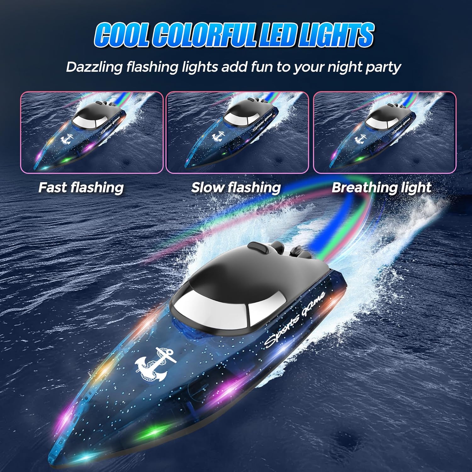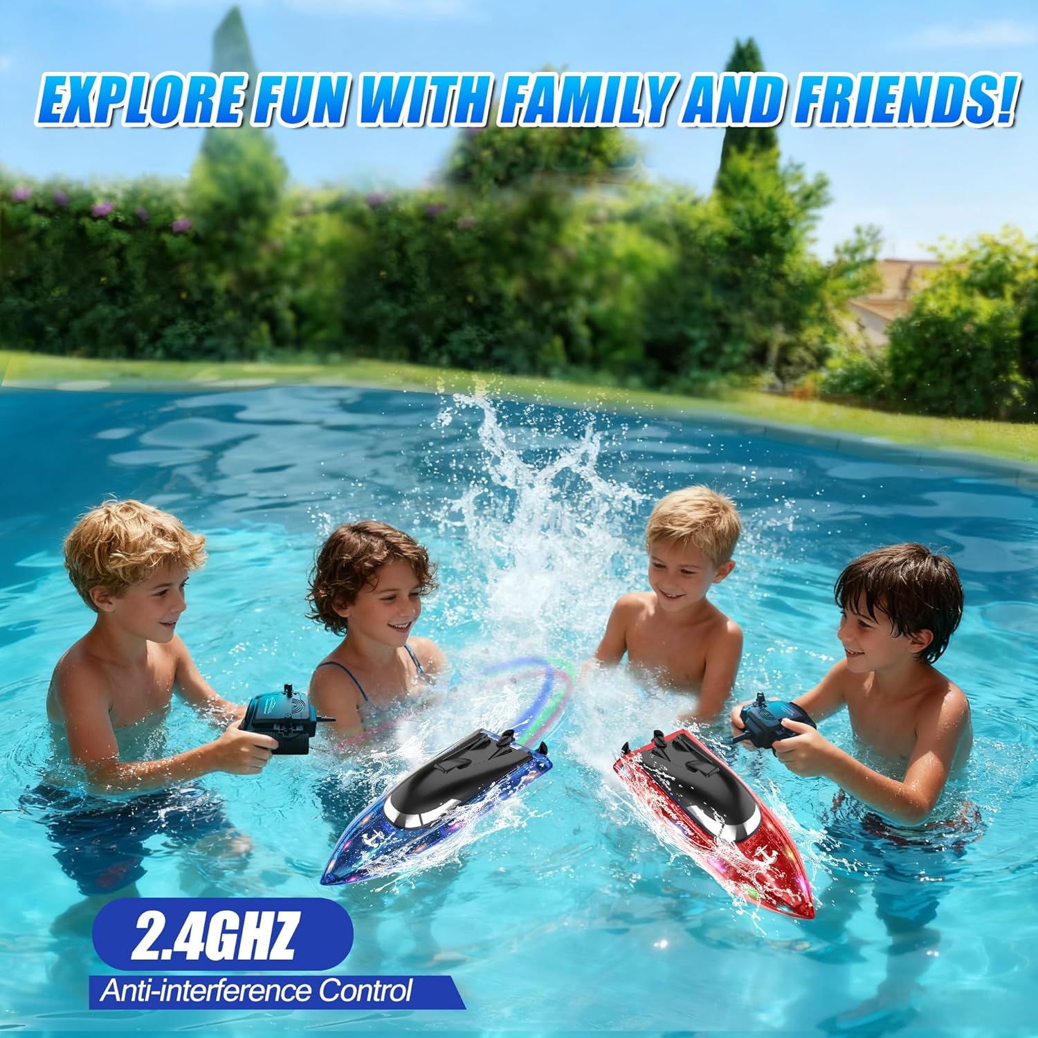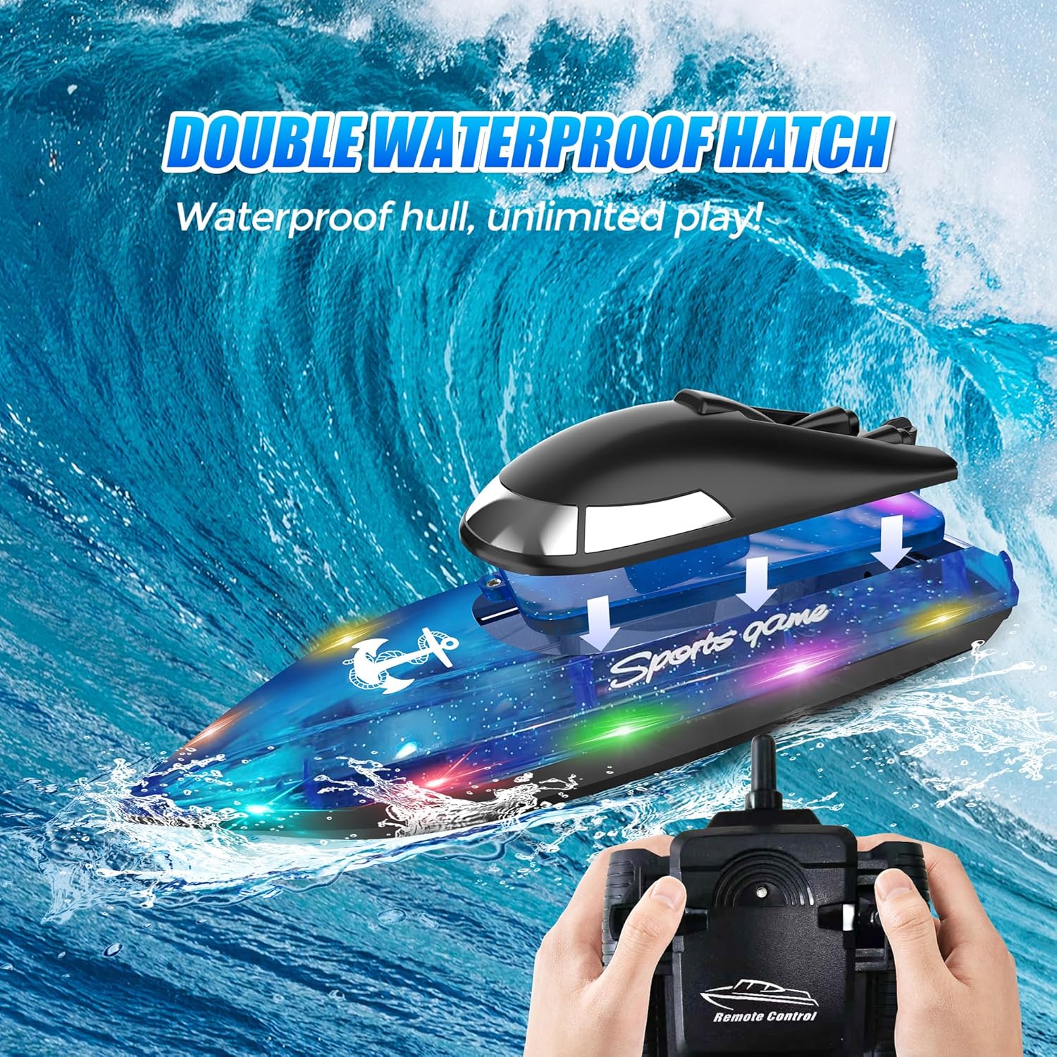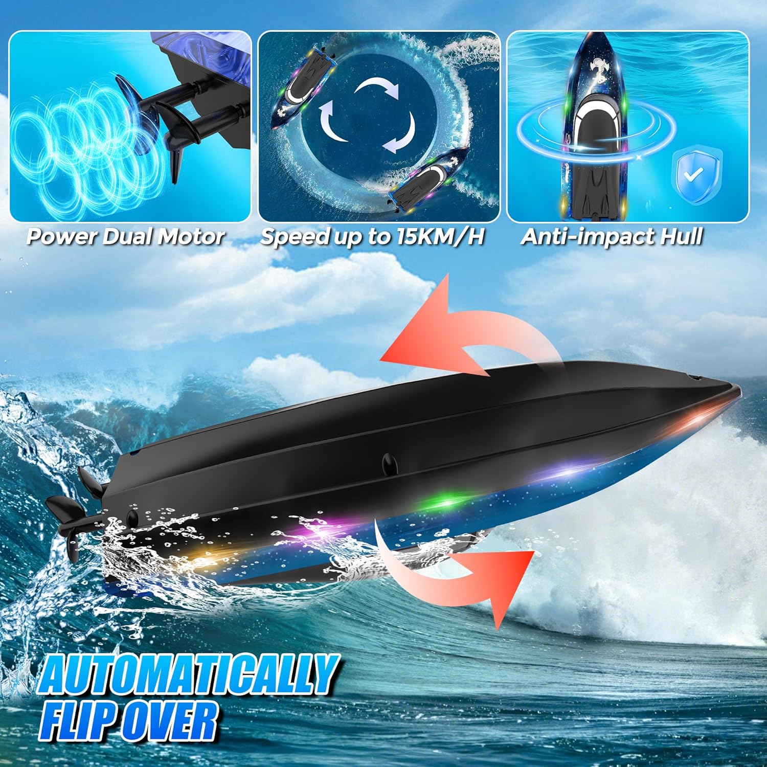 💡【Luci LED dinamiche】–La copertura di questa barca telecomandata è trasparente e decorata con paillettes. Il bordo della barca radiocomandata è dotato di 10 luci LED luminose e colorate con 3 modalità (lampeggio veloce, lampeggio lento, luce intermittente). Le luci LED dinamiche non solo sono molto belle al buio, ma consentono anche di identificare chiaramente la posizione e la direzione della barca, permettendoti di goderti il divertimento della navigazione notturna. 🔋【Oltre 100 minuti di batteria a lunga durata】–Questa barca telecomandata per bambini è alimentata da una batteria ricaricabile ad alta capacità da 1800 mAh che può fornire alla barca giocattolo un funzionamento continuo per oltre 100 minuti dopo essere stata completamente caricata (2 ore). Che tu stia navigando in piscina o facendo onde al lago, goditi un'emozione senza sosta senza ricariche frequenti: l'avventura continua! 💦【Design a doppio portello completamente impermeabile】–La barca radiocomandata adotta portelli a doppia tenuta stagna e un design aerodinamico. Questi portelli resistenti proteggono efficacemente i componenti interni, assicurando che la barca funzioni in modo fluido ed efficiente e prevengono l'ingresso di acqua durante curve strette o onde, prolungando la vita utile delle barche. 🎮 【Telecomando avanzato a 2,4 GHz】 - La barca radiocomandata per bambini con un sistema anti-interferenza a 2,4 GHz, facile da controllare. Questo giocattolo per barche permette ai bambini di gareggiare con più barche contemporaneamente senza interferenze. Ideale per piccole competizioni con gli amici o giochi acquatici all'aperto con le famiglie durante il tempo libero! La portata di 50 metri garantisce gare emozionanti in aree di gioco più ampie. 🚀【Sistema ad alta velocità e doppio motore】 Questa barca giocattolo da lago è dotata di potenti motori doppi ad alta velocità, con velocità di guida fino a 15 km/h. Le dimensioni sono perfette per vasche da bagno, piscine, piccoli stagni, fiumi e laghi, e questa barca RC ha la correzione automatica dell'imbardata e la funzione di recupero del capovolgimento che riporta la barca in posizione verticale in caso di capovolgimento, il che può portare più divertimento ai bambini. ✅【Protezione batteria scarica】Quando la velocità della piccola imbarcazione diminuisce improvvisamente e lentamente, la carica della batteria è insufficiente e l'imbarcazione è entrata in stato di bassa protezione, è necessario caricare la batteria dell'imbarcazione. Quando la spia del telecomando lampeggia, il telecomando è in stato di bassa potenza. È necessario sostituire le batterie del telecomando. 🎁【Regalo perfetto per i tuoi bambini】Questo motoscafo radiocomandato è progettato per i bambini ed è adatto a una varietà di luoghi, tra cui lago, piscina, stagno, fiume e vasca da bagno. È un ottimo regalo di compleanno e di festa per bambini, adatto a ragazzi e ragazze di 6, 7, 8, 9 e 10 anni.