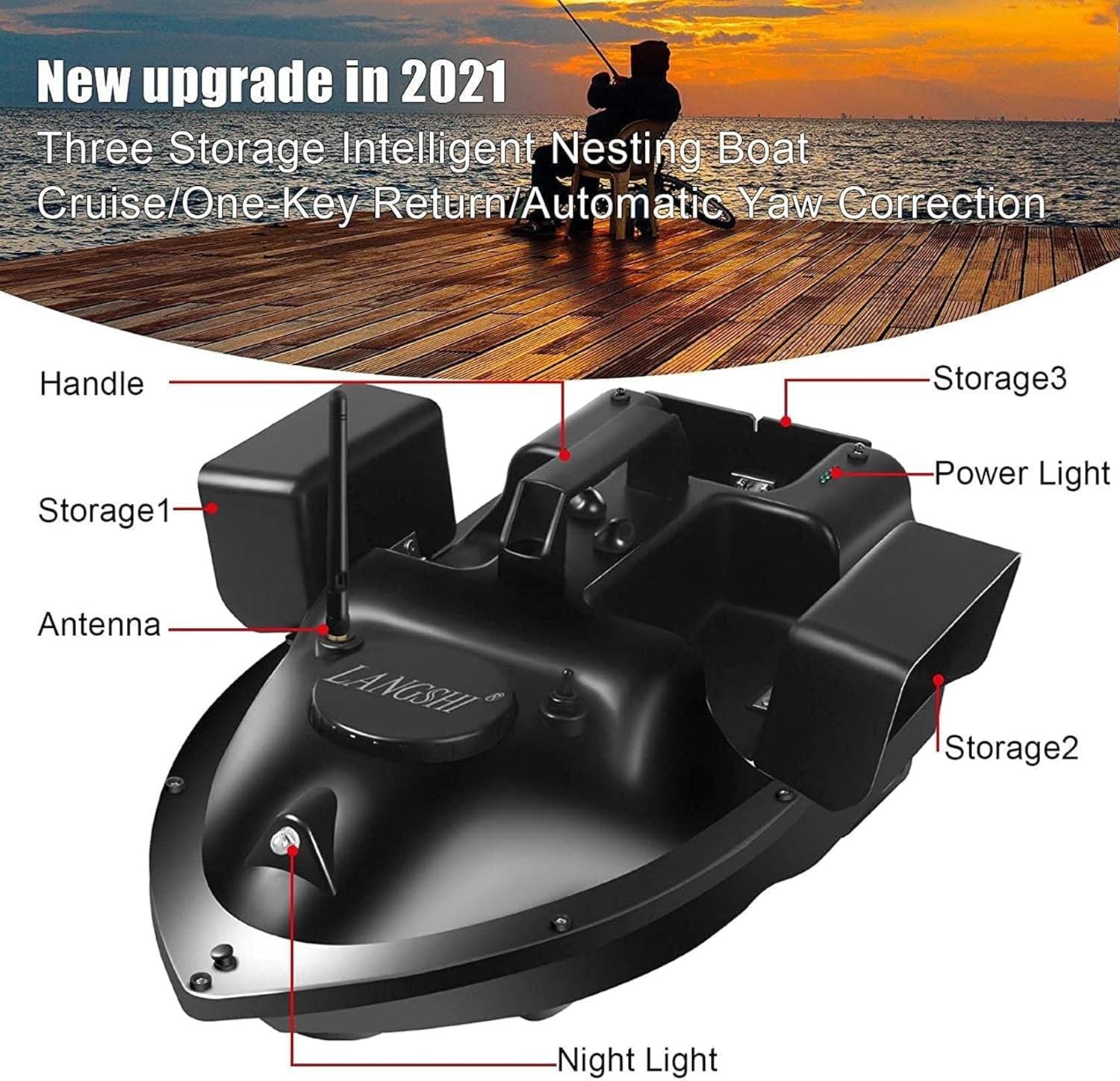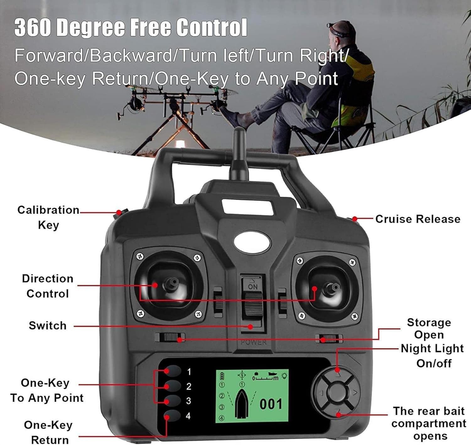 (ricezione del segnale a 500 m) - In caso di disturbo del segnale, la rimozione del telecomando è di 500 m, il che significa che l'esca può essere portata nel pesce denso e non devi preoccuparti della differenza di distanza tra il telecomando. La batteria ha 7,4 V e 12000 V MA e può essere utilizzata ininterrottamente per circa 3-4 ore! ! ! (Controllo indipendente dell'esca) - 3 contenitori per esche possono essere controllati indipendentemente l'uno dall'altro per evitare che vengano posizionate esche diverse contemporaneamente per ottenere un posizionamento di più punti e dotati di una scanalatura per l'amo, è possibile effettuare il posizionamento di punti fissi (Luci di navigazione notturne controllabili) - Il design delle luci anteriori e posteriori bicolore può essere controllato a distanza per determinare chiaramente la posizione della nave. Può offrire un buon ambiente di illuminazione per determinare il punto di ancoraggio nelle giornate nuvolose e di notte (Design integrato) - Il corpo della fusoliera è costituito da una ciotola rigida in ABS, è completamente impermeabile e resistente all'umidità, scomodo da indossare - la fusoliera è grande, la messa a fuoco è stabile e non teme vento e onde. (Ampia area di applicazione) adatto per fiumi, laghi e zone di acque poco profonde. È uno strumento di pesca indispensabile e anche uno strumento pratico. È una buona scelta per te.