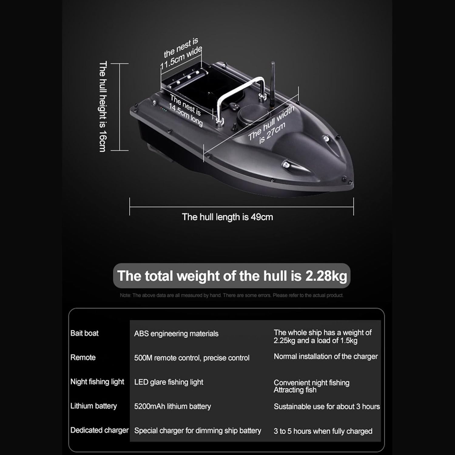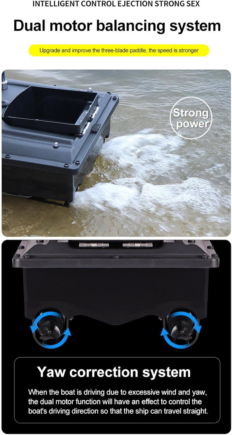 MATERIALE ABS: la barca da pesca è realizzata in materiale ABS, che è più stabile e solido, lavorazione squisita, qualità so-lida e può resistere a forti venti e onde. Ha un design ad anello impermeabile, cabina senza cuciture e un corpo completamente chiuso e impermeabile POSIZIONAMENTO PRECISO DI NOTTE: è dotato di una luce di navigazione di posizionamento notturno. Se utilizzato normalmente di notte, può emettere una luce chiara e brillante per bloccare con precisione la posizione della barca di nidificazione. Gli utenti possono anche osservare chiaramente la posizione e la traiettoria di navigazione della barca di nidificazione per garantire che la barca di nidificazione possa raggiungere con precisione la posizione prestabilita CORREZIONE DELLO YAW A DOPPIO MOTORE: la barca è dotata di un sis-ema di bilanciamento automatico, quando la barca sta imbardando a causa di v-ento e onde eccessivi durante la navigazione, i due motori possono controllare efficacemente la direzione della barca per mantenerla in linea retta DESIGN RAGIONEVOLE: 5200 mAh/12000 mAh (opzionale), 3-5 ore di durata della batteria, ricarica rapida, scatola per esche extra large, può contenere 1,5 kg di esche, 2 luci da pesca notturne. Ha due motori, e-lica a tre pale migliorata e potenziata con controllo de-licato, si solleva potentemente durante la nidificazione e il motore si spegne automaticamente per evitare di disturbare i pesci IL NOSTRO SERVIZIO: le tue esigenze sono la nostra ricerca. Se hai domande sul prodotto, non esitare a contattarci. Ti risponderemo entro 24 ore. Ti risponderemo il prima possibile per risolvere il tuo problema
