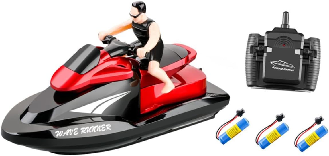 Navigazione stabile: la nostra barca telecomandata 2.4G RC è dotata del più recente sistema di controllo radio a 2,4 GHz, che riduce al minimo le interferenze e garantisce una trasmissione stabile del segnale. Ciò garantisce un controllo preciso e consente una navigazione senza interruzioni in modo da non perdere un solo momento di divertimento Resistente all'acqua: con la sua struttura in ABS resistente e impermeabile, questa barca telecomandata è perfetta per esplorare le acque di piscine, laghi e vasche da bagno e può resistere a tutte le condizioni atmosferiche senza danni causati dall'acqua Divertimento avanzato nelle corse: goditi un divertimento di gruppo senza sforzo con emozionanti gare di squadra con la nostra barca telecomandata. Il design Multi-K RC consente di gareggiare su più barche contemporaneamente con la potenza della batteria ottimizzata per un tempo di gioco fino a 12 minuti in più. Navigazione senza sforzo: ottieni la navigazione più precisa con la nostra barca telecomandata progettata per la massima manovrabilità. Il sistema di avviso di batteria scarica garantisce che non sarai mai colto di sorpresa, mentre il rilevamento di accensione di sicurezza garantisce una buona protezione. Inoltre, la ricarica USB rende la gestione dell'energia un gioco da ragazzi. Gioco acquatico flessibile: dai una spinta ai tuoi giochi acquatici con questa barca telecomandata che aggiungerà entusiasmo a tutte le età. Le sue dimensioni compatte lo rendono ideale per l'uso in vasche da bagno interne e piscine per bambini, nonché per l'intrattenimento estivo all'aperto