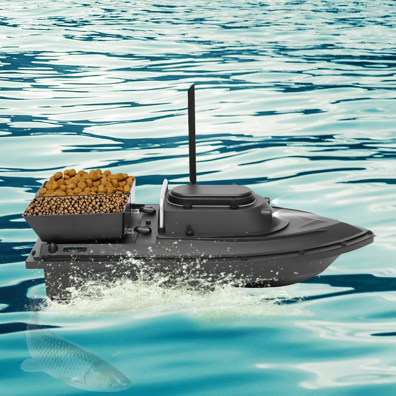 DUREVOLE: l'esca è realizzata in materiale ABS di alta qualità, atossico e inodore, con forte resistenza agli urti e all'abrasione, il processo di sabbiatura rende il prodotto più liscio e garantisce la durata del prodotto. RESISTENZA AL VENTO FORTE: la barca con esche ha uno scafo aerodinamico per ridurre la resistenza e aumentare la velocità e la costruzione chiusa impedisce efficacemente la fuoriuscita di acqua. Può guidare come al solito alla classe del vento 5. LUNGA DISTANZA DI TRASMISSIONE: l'antenna fusoliera dell'esca (5,9 pollici) riceve segnali senza interferenze da tempo e ambiente e la distanza di controllo remoto può raggiungere fino a 1.640,4 piedi, riducendo la limitazione di utilizzo. SMART REMOTE CONTROL: l'esca dispone di un telecomando 2.4G che consente di regolare la direzione della barca, controllare la doppia scatola delle esche e utilizzare la funzione Cruise per avere le mani libere. FACILE DA TRASPORTARE E CONTENUTO: la barca per esche da pesca è leggera e piccola, in modo da poterlo portare facilmente con te in viaggio. Inoltre non occupa molto spazio quando lo si ripone.