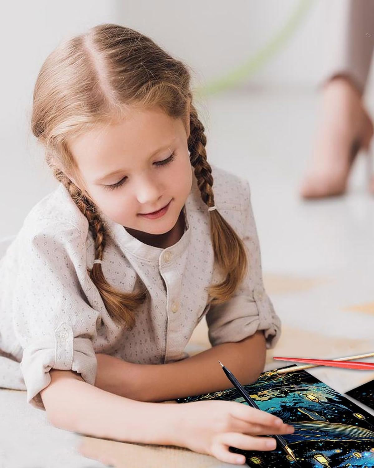 Materiale sicuro: il cartone luminoso e la penna di legno del set di scratch art della balena sono realizzati con materiali atossici e innocui, sicuri sia per i bambini che per gli adulti. Configurazione ricca: il set include 4 carte luminose da grattare da 29,5*21 cm e 1 penna da grattare. Scene diverse: questo kit di artigianato artistico fai da te è adatto a vari incontri come feste serali, feste di compleanno, feste di Natale, ecc. È adatto anche per la famiglia, attività in classe e progetti fai da te, stimolando completamente la creatività e l'immaginazione dei bambini Regalo premuroso: è la scelta migliore per i regali fai da te per bambini, particolarmente adatto per compleanni, festa dei bambini, Pasqua, Halloween, Ringraziamento, Natale e altri regali di festa Suggerimenti: il motivo graffiato si illumina al buio, consigliato per bambini di età superiore ai 3 anni. Questa attività è molto adatta all'interazione genitori-figli e può migliorare la relazione tra figli e genitori.