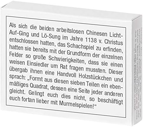 Puzzle strano per sfidarvi: sul retro della scatola è divertente descritto come rimuovere l'uovo di aglio. I mini puzzle sono descritti in modo impertinente, sono divertenti come regalo per i bambini o per se stessi e mantengono mentalmente in forma. I giochi di Knobel sono regali di compleanno belli ed emozionanti e vengono anche confezionati in calendario dell'Avvento o utilizzati come divertenti regalini durante le gite al passatempo. Piccolo e maneggevole - Dimensioni della scatola: 65 x 50 x 13 mm Made in Germany, alta qualità, direttamente dal produttore