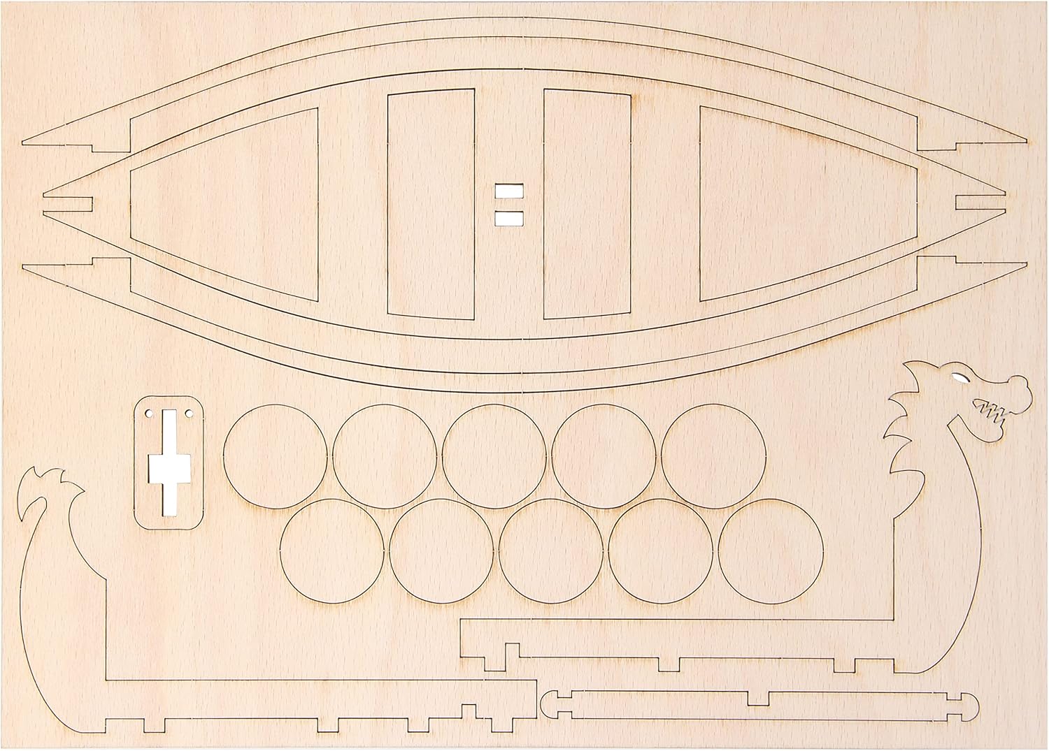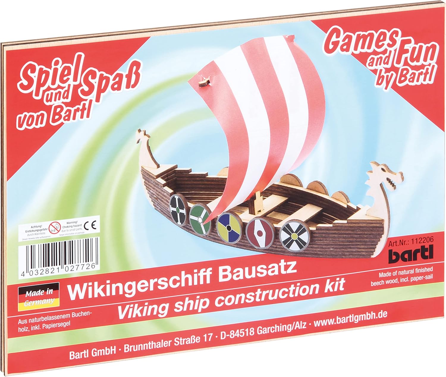 La barca vichinga è facile da montare Il kit è realizzato in legno di faggio naturale La barca è composta da 40 parti singole e può essere assemblata in 30 minuti Di cosa hai bisogno prima di iniziare? : colla per legno/colla artigianale e carta vetrata