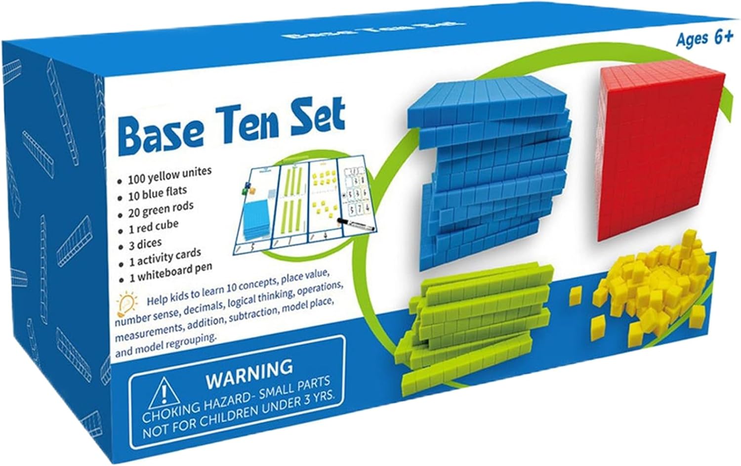 Nutrire il pensiero critico: migliorare la comprensione rappresentando visivamente idee matematiche astratte con dieci blocchi di base tridimensionale, incoraggiando una comprensione profondamente radicata del decimale e facilitando l'apprendimento della matematica avanzata Incoraggiare la risoluzione dei problemi: impegnarsi in questo set non solo coltiva il pensiero logico e l'immaginazione spaziale attraverso operazioni pratiche, ma stimola anche l'interesse e la fiducia nella matematica mentre i bambini esplorano le regole matematiche Porta gioia e divertimento: partecipare a molteplici modi di giocare con i dieci blocchi di base, come contare, e portare la conversione, incoraggiare la capacità di calcolo e il pensiero matematico Sicuro e affidabile: realizzato in un eccellente materiale ABS, progettato per un gioco a lungo termine senza bordi appuntiti, fornendo un'esperienza sicura e senza matrimoni per i bambini Foster Growth insieme: una guida interattiva per i genitori per guidare i propri figli, incoraggiando la crescita e la padronanza dei concetti matematici mentre costruiscono e migliorano la relazione genitore-figlio attraverso l"apprendimento condiviso e le esperienze educative