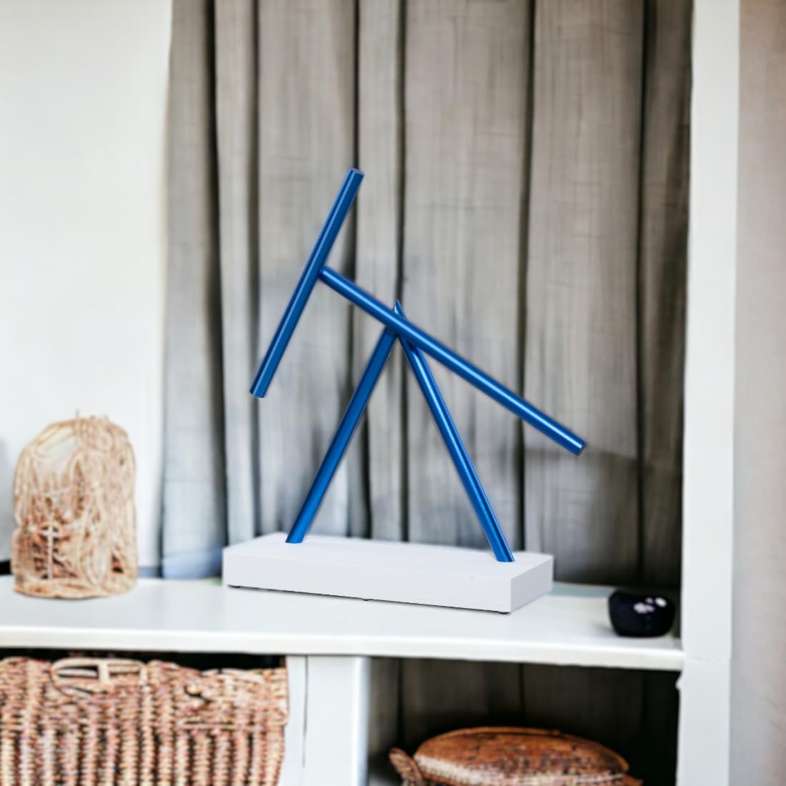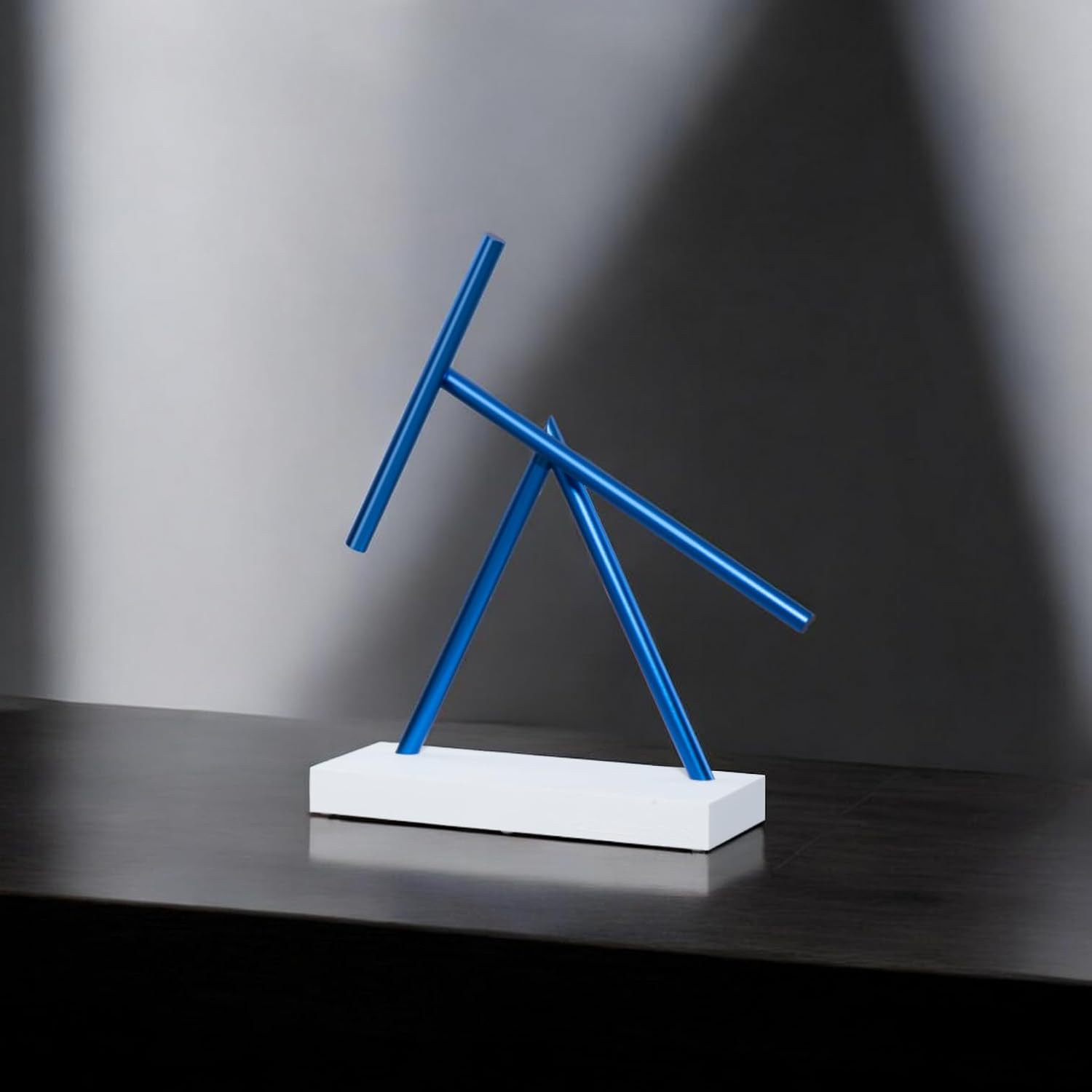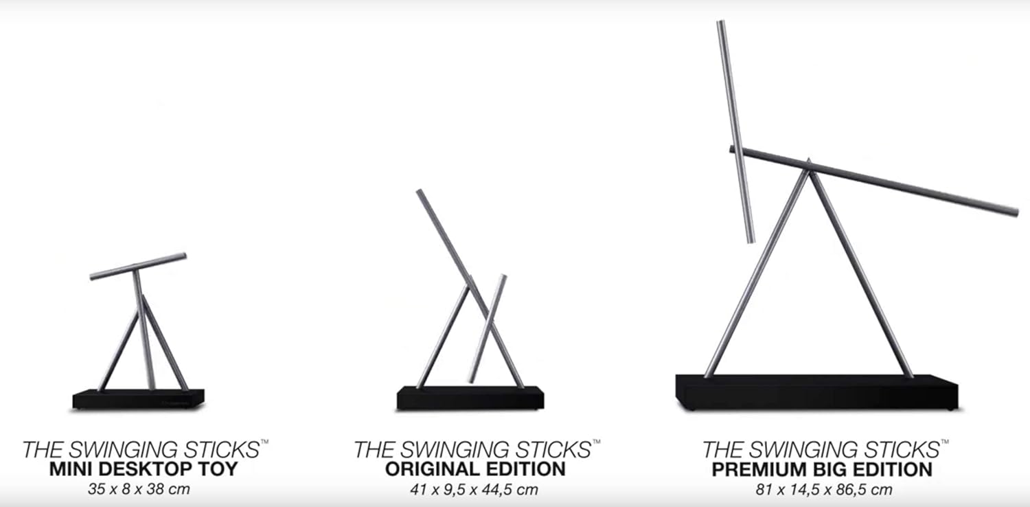 Spazio per il riposo: The Swinging Sticks Basic Edition in elegante bianco con aste anodizzate blu intenso, questa edizione aggiunge un tocco di stile a qualsiasi stanza. Il movimento oscillante dolcemente ha un effetto calmante e meditativo, un affascinante gioco di dinamismo e silenzio. Sia in ufficio moderno, in salotto pieno di luce o in uno studio creativo: The Swinging Sticks trasforma qualsiasi ambiente in un luogo di ispirazione, concentrazione ed equilibrio estetico. Originale protetto con amore per i dettagli: The Swinging Sticks è protetto in molti paesi in tutto il mondo come design registrato (brevetto di design, copyright, trademark) ed è realizzato esclusivamente da BTS Trading GmbH in perfetto equilibrio. Ogni scultura è realizzata a mano e garantita solo come originale in questa qualità. ️ Sguardo in qualsiasi stanza: in ufficio, sala conferenze, reception o vetrina: The Swinging Sticks attira l'attenzione di tutti. Essendo un oggetto di design moderno, la scultura si adatta perfettamente a qualsiasi ambiente, combinando tranquillità, stile e innovazione. Tecnologia precisa: testata e affidabile: il movimento avviene attraverso un preciso impulso elettromagnetico, senza azionamento visibile. Ogni dispositivo viene testato per 7-10 giorni in condizioni reali per garantire la massima sicurezza e durata nel tempo. (Funzionamento con 4 batterie AA, non incluse) ️ ILLUSION ENERGIA SENZA FINITI Vivi la perfetta illusione di un cellulare perpetuo: movimento fluido e infinito che non lascia inizio o fine visibili. Ideale per gli amanti della tecnologia, gli appassionati di design e tutti coloro che sono affascinati dall'inspiegabile. Funzionamento silenzioso: la scultura è silenziosa ed è quindi ideale per spazi tranquilli come studi medici, biblioteche o luoghi di lavoro. Solo con il silenzio assoluto si sente un ticchettio discreto, quasi meditativo. IPNOSI PER LA SCRITTURA The Swinging Sticks è più di un oggetto decorativo – è un richiamo meditativo che rallenta lo spirito. Perfetto per alleviare lo stress, far fluire i pensieri e stimolare gli impulsi creativi.