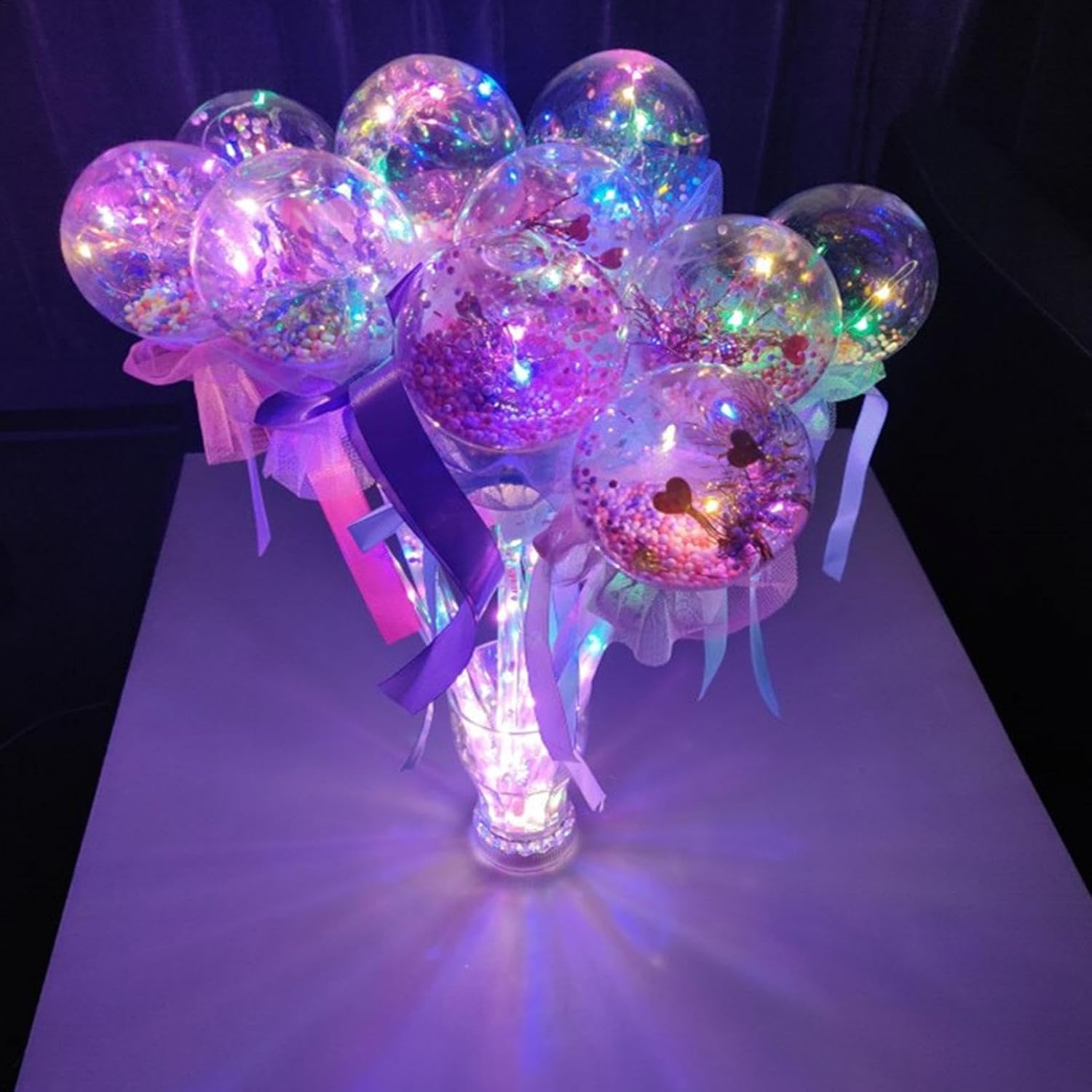 Emettono una luce colorata al buio: con questa bacchetta luminosa fata, il tuo bambino potrà godere di uno spettacolare spettacolo di luci al buio. È dotato di LED colorati che lampeggiano e brillano e gli conferiscono un aspetto fatato e affascinante. Diversi stili: i bambini possono scegliere tra molte forme in base alle loro preferenze, come: farfalle, bambole, zucchero, cuori, stelle a cinque punte, ecc. Queste bacchette possono brillare e creare un'atmosfera festosa per gli alberi di Natale. Facile da aprire: questo bastone da fata dispone di uno che i bambini possono premere per accendere o spegnere l'effetto luminoso e lampeggiante. È un giocattolo divertente e semplice per bambini di tutte le età. Giocoso e creativo: questa asta luminosa da fata è un duplice scopo che può essere utilizzata come giocattolo o oggetto di scena per diverse occasioni come festival, feste, spettacoli e altro ancora. Liscio e innocuo: questa bacchetta luminosa da fata ha una superficie morbida e liscia, sicura e inodore. È realizzato con materiali non irritanti che non graffiano o danneggiano la pelle. Puoi divertirti con la fata in modo delicato e confortevole.