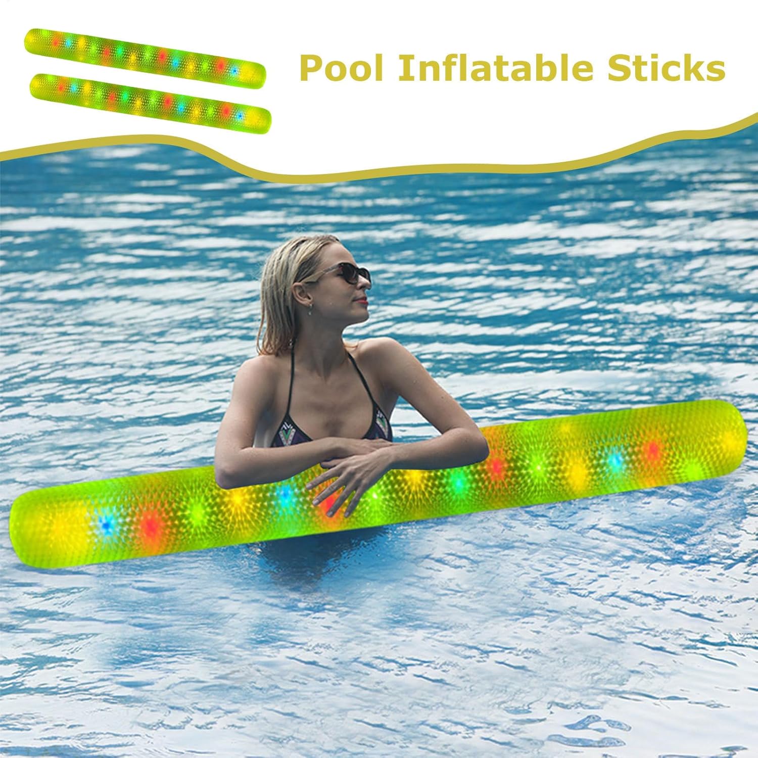 Illumina le tue avventure acquatiche: creato per adulti, il nostro noodle gonfiabile per piscina dal design illuminato migliora la tua esperienza in piscina o in spiaggia, fornendo un bastone da nuoto comodo e robusto che aggiunge eccitazione e divertimento al gioco in acqua Processo di gonfiaggio efficiente: si adattano facilmente alle pompe ad aria elettriche e dotate di un controller d'aria avanzato, queste tagliatelle per piscina si gonfiano o si sgonfiano rapidamente, rendendole facili da riporre e trasportare, risparmiando tempo e fatica Resistente ai raggi UV: realizzati in PVC resistente agli strappi, questi spaghetti gonfiabili per piscina presentano un design resistente ai raggi UV per una lunga durata e ritenzione del colore, rendendoli resistenti allo sbiadimento e alle screpolature Divertimento notturno luminoso: i tubi luminosi colorati incorporati aggiungono romanticismo e divertimento alle feste in piscina o alle attività in spiaggia, brillando di un'affascinante lucentezza di notte, creando un'atmosfera festosa Caratteristiche di comfort migliorate: migliora il comfort consentendo varie posture di rilassamento, come seduti, alla deriva o sdraiati; adatto per riunioni di adulti, legami familiari o prendere il sole tranquillo