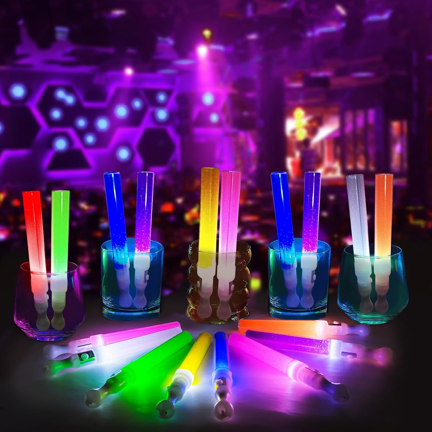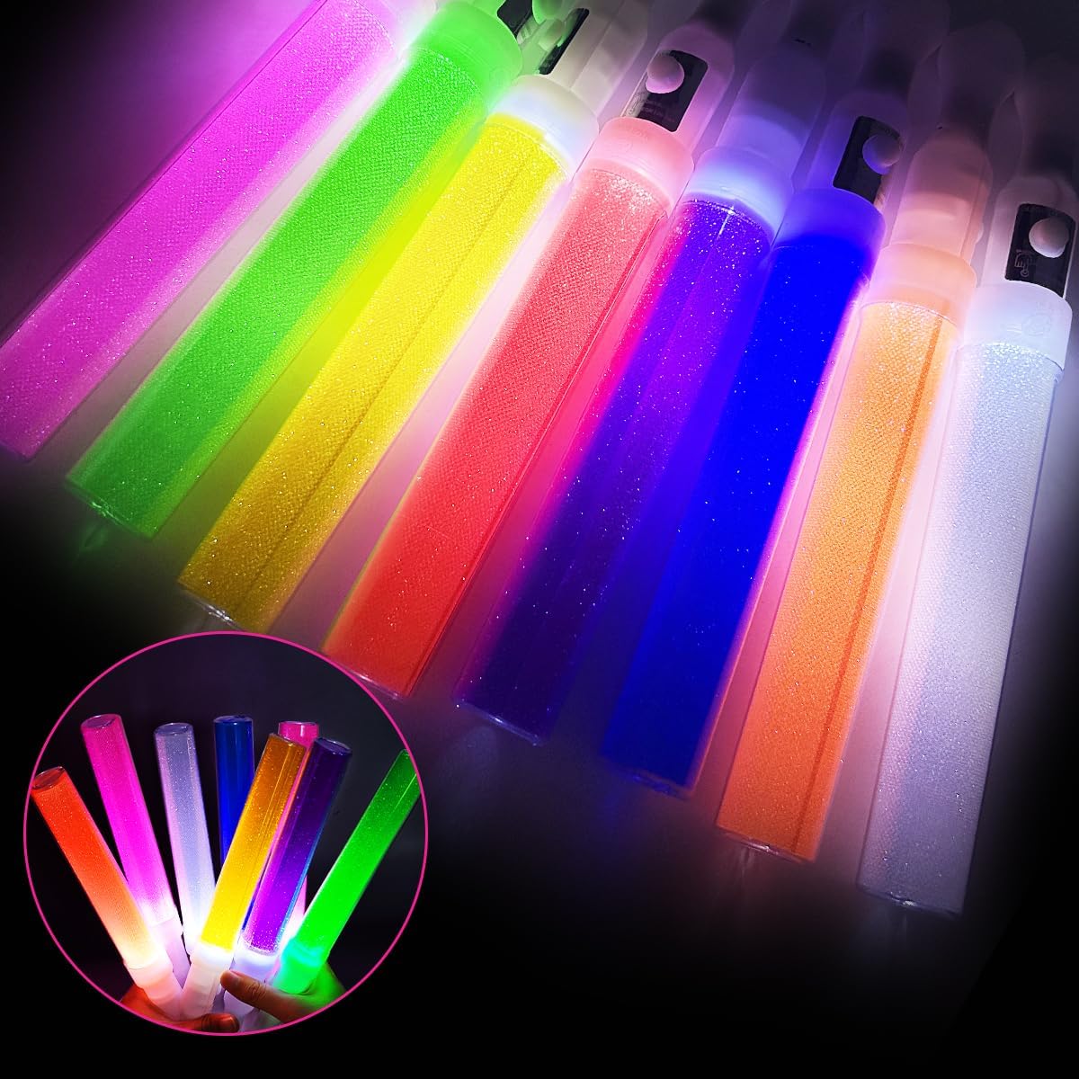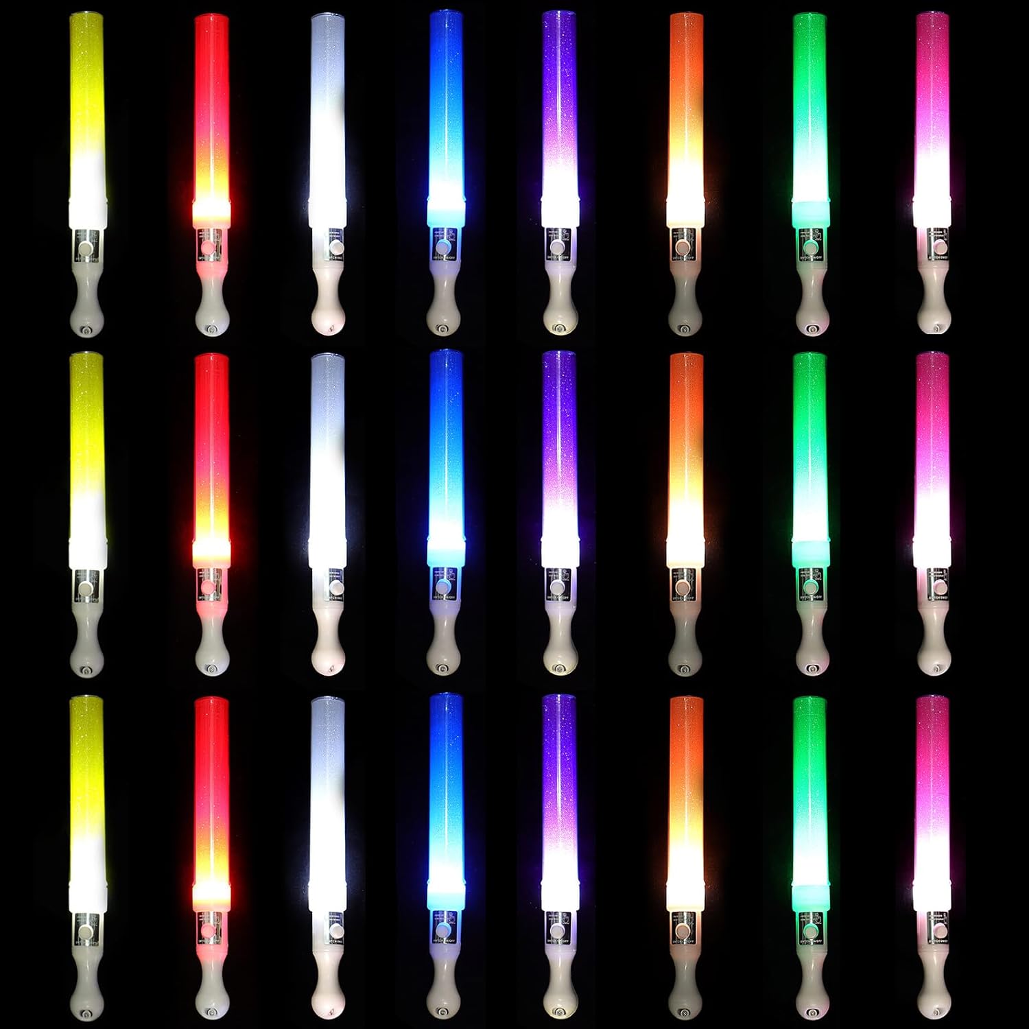 Set di 24 bastoncini luminosi a LED multicolore: questo set di 24 bastoncini luminosi a LED è realizzato in materiale ABS + PS, sicuro e affidabile, soddisfa le esigenze di più parti. Che si tratti di un concerto, rave, matrimonio, capodanno o festa di compleanno, crea un'atmosfera colorata e diventa un bastoncino luminoso indispensabile per la tua festa 8 colori colorati, modalità lampeggiante continua: questo bastone luminoso a LED offre 8 colori vivaci (rosso, blu, giallo, verde, viola, bianco, rosa, arancione), 3 pezzi di ogni colore per soddisfare diversi temi di festa. Modalità lampeggiante costante, luminosità stabile e accattivante in ambienti bui, perfetta per concerti, feste notturne, festival, creando un'atmosfera vibrante Leggero e pronto all'uso: ogni bastoncino luminoso pesa solo circa 30 grammi ed è leggero e facile da maneggiare, con una dimensione ergonomica di 3 cm x 25 cm per una presa confortevole. Non c'è bisogno di imballaggi extra o complicate configurazioni, sono pronti per l'uso direttamente fuori dalla scatola, rendendoli l'accessorio ideale per feste improvvisate, festival musicali all'aperto ed eventi notturni Migliora l'atmosfera della festa: progettata per eventi di gruppo, questa confezione da 24 bastoncini luminosi a LED è adatta per spettacoli scolastici, feste in discoteca ed è ideale per bastoncini luminosi con più requisiti di quantità. Che si tratti di intrattenimento personale, eventi di gruppo o occasioni festive, questi bastoncini luminosi a LED sono molto divertenti Applicazione multi-scenario: questo bastoncino luminoso cambia colore è perfetto per matrimoni, feste rave, feste di Capodanno, feste di compleanno, feste aziendali, che può migliorare istantaneamente l'atmosfera e rendere l'evento più emozionante! Che si tratti di oggetti di scena interattivi, decorazioni festive o regali, offrono un'esperienza indimenticabile e sono amati da bambini, adolescenti e appassionati di feste