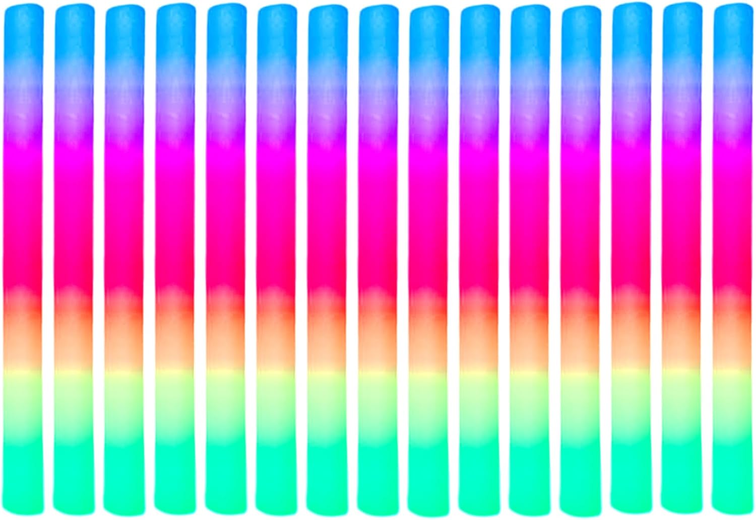 Uscita di luminosità costante: questi bastoncini luminosi presentano un design avanzato della sorgente luminosa che massimizza la durata dell'illuminazione, offrendo una maggiore usabilità per migliorare avventure all'aperto, feste o kit di preparazione alla sicurezza Impostazioni flash regolabili: questi bastoncini luminosi in schiuma sono dotati di modalità flash veloci, lente e alternate, soddisfano le esigenze di varie emozioni fornendo un'illuminazione vivace, ideale per festival, riunioni o attività notturne per creare ambienti coinvolgenti Ampia gamma di utilizzabilità: progettati per la versatilità, i bastoncini luminosi per feste illuminano matrimoni, carnevali ed eventi sportivi, offrendo una visibilità affidabile durante feste di Halloween, feste di Natale o attività in campeggio, rendendoli ideali per pub, compleanni e altri usi multi-occasione Illuminazione sicura per tutti: con la loro struttura robusta e resistente alle cadute e i materiali morbidi che migliorano la luminosità, questi bastoncini luminosi in schiuma sollevano qualsiasi evento creando una miscela atmosferica di luci e ombre, rendendoli indispensabili per feste a tema o luoghi di intrattenimento serale Versatile soluzione Glow Stick: con una batteria sostituibile integrata e un pulsante on/off dedicato, questi bastoncini luminosi per matrimoni garantiscono un divertimento prolungato, spegnendosi quando non vengono utilizzati e sono ideali per creare momenti affascinanti in eventi notturni o celebrazioni