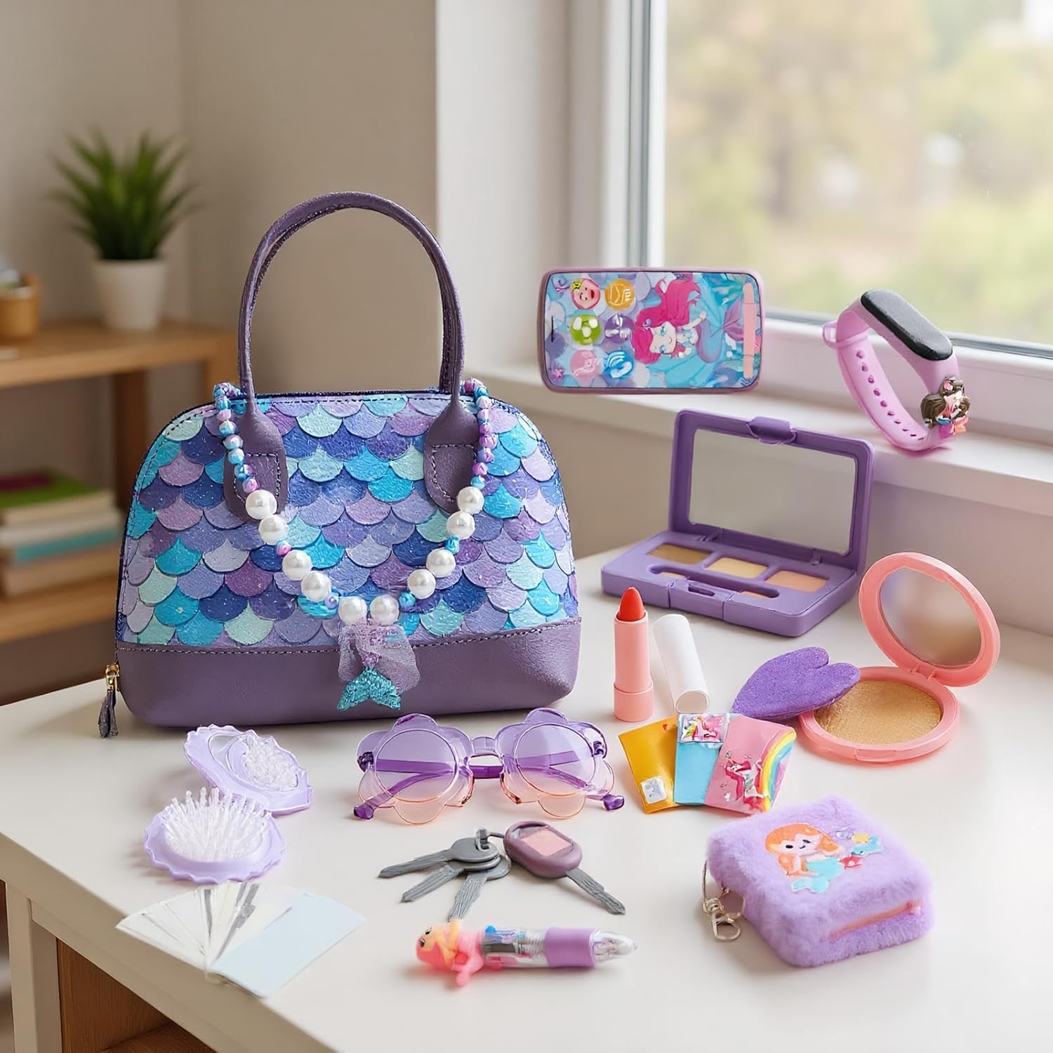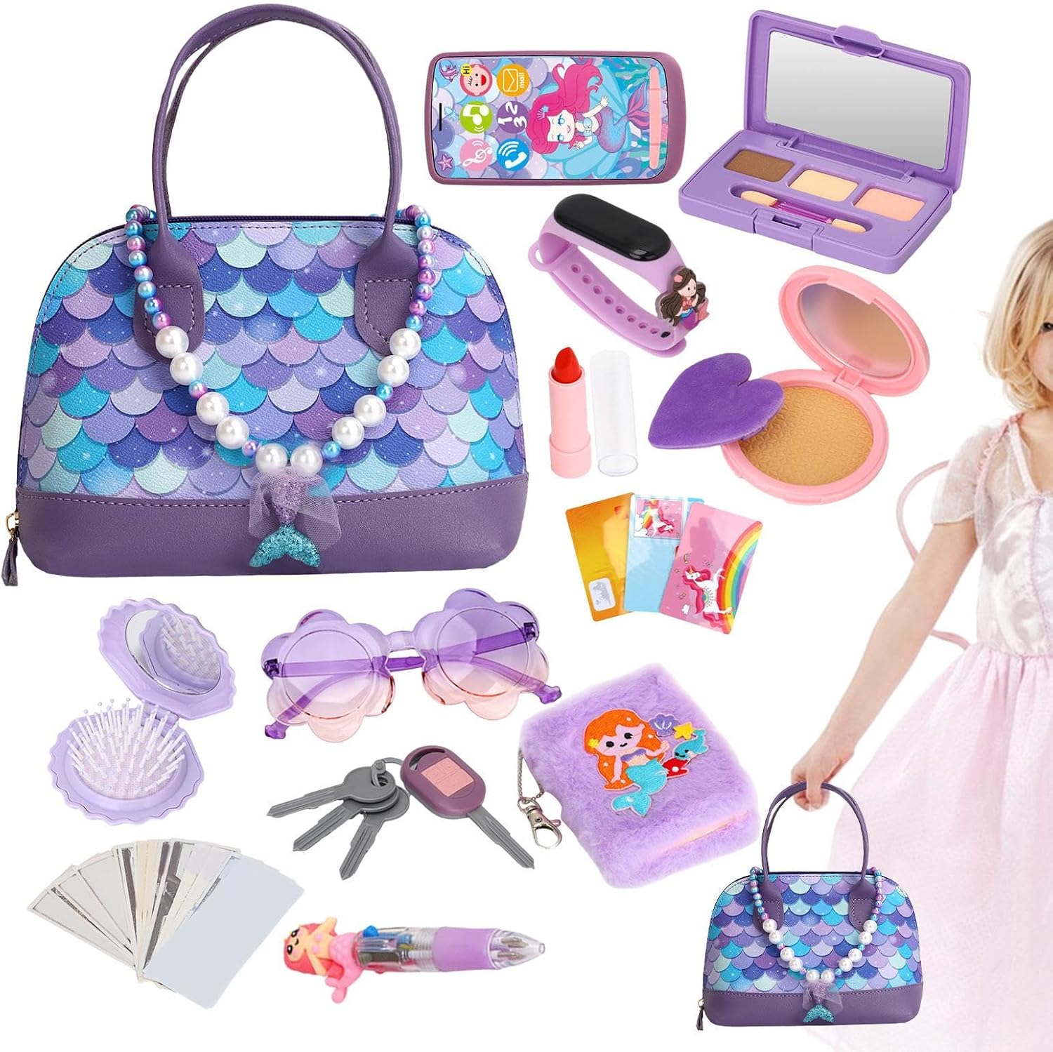 Sviluppatore di Abilità Sociali: Promuove il gioco di ruolo immaginativo simulando situazioni quotidiane come shopping, permettendo ai bambini di sviluppare logica e curiosità mentre si dedicano a narrazioni creative ed esplorano ambienti sociali dinamici in tutta sicurezza Regalo : Questa borsetta gioco per bambine è presentata in una confezione elegante, rendendola un pensiero ideale per compleanni, feste o occasioni speciali. Sostiene lo sviluppo emotivo e creativo e rafforza il genitore-figlio attraverso momenti di gioco interattivo e condiviso, ispirando gioia e fantasia. Materiali Sicuri: La combinazione di ABS e schiuma offre una texture morbidissima e superfici innocue perfetta per le mani piccole le bambine possono immergersi nel gioco di ruolo creativo con fashion e stile senza pericolosi e con massima protezione durante ogni attività Scena applicabile: Progettata con un layout intelligente, la borsetta giocattolo assicura che tutti i componenti si ripongano ordinatamente nella borsa con cerniera in stile principessa, rendendo facile per le bambine trasportare i propri tesori e divertirsi con attività creative a casa o in viaggio Gioco Interattivo Principesse:Progettato per incoraggiare il gioco simbolico, questo set con borsa, telefono, orologio e chiavi insegna competenze quotidiane in modo divertente, per avventure a tema principesse a casa o durante le feste