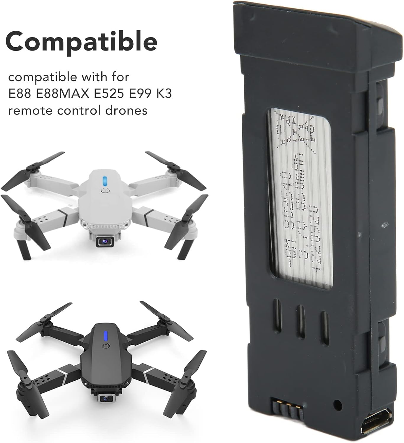 ALIMENTAZIONE A BATTERIA: la batteria sostitutiva RC UAV ha una lunga durata e fornisce alimentazione al drone per una lunga durata. MATERIALE DUREVOLE: la batteria al litio dei droni RC è realizzata in guscio ABS, che è resistente e stabile da utilizzare e mantenere la batteria. PRESTAZIONI STABILI: corrente di uscita stabile della batteria al litio RC UAV per mantenere il tuo modello di drone RC con una tensione stabile di 3,7 V. COMPATIBILE: la batteria UAV del telecomando è compatibile con i droni telecomandati E88 E88MAX E525 E99 K3. DESIGN PORTATILE: la batteria sostitutiva UAV presenta un design compatto e leggero, che la rende facile da trasportare.