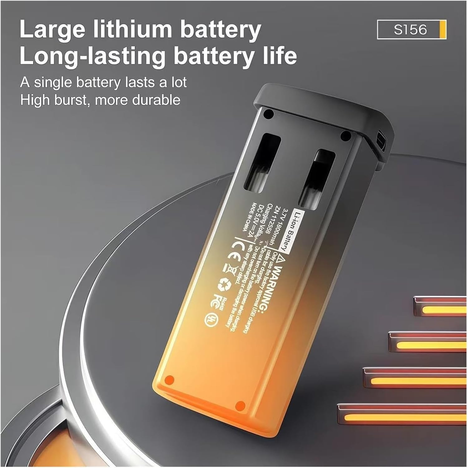 Si adatta perfettamente all'S156: questa batteria originale for droni S156 da 3,7 V e 1800 mAh è realizzata appositamente for i droni S156. Si adatta perfettamente e perfettamente. Capacità for voli più lunghi: l'elevata capacità di 1800 mAh ripristina l'autonomia di volo originale del drone S156. Ti consente di volare più a lungo for riprese aeree, voli casuali o divertimento in giardino senza doverti fermare spesso for ricaricare. Potenza stabile da 3,7 V for prestazioni fluide: garantisce decolli costanti, volo stazionario fluido e nessun calo improvviso di potenza a metà volo Progettato for la sicurezza: include protezione da sovraccarico, scaricamento eccessivo e cortocircuito, in modo da non danneggiare il drone o la batteria stessa durante l'uso o la ricarica. Facile da caricare e sostituire: non sono necessari adattatori aggiuntivi. Basta collegare la batteria for caricarla e, una volta carica, inserirla nel drone.
