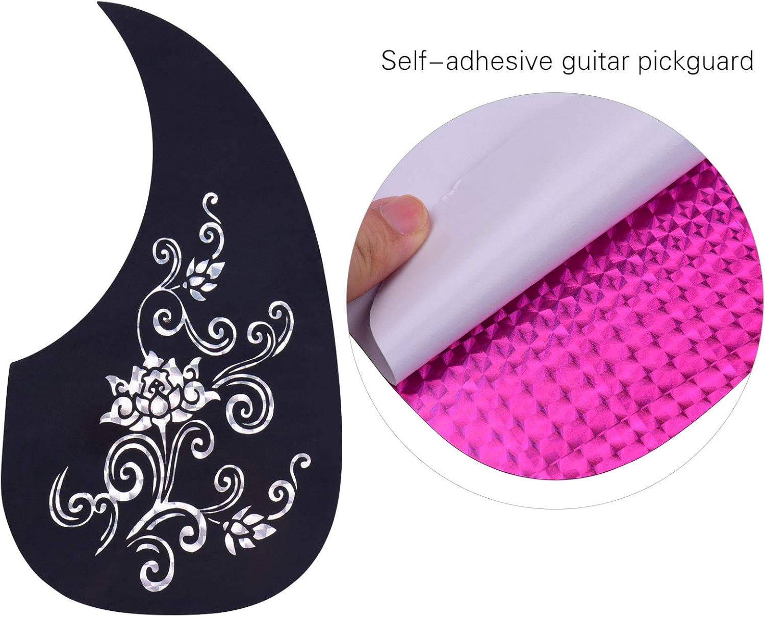 Questi 2 battipenna per chitarra sono appositamente progettati per chitarre acustiche da 40/41 pollici. Può efficacemente la tua amata chitarra dai graffi. Speciale motivo floreale, rende la chitarra più bella. Realizzato in PVC di alta qualità, robusto e abbastanza resistente per un uso prolungato. Battipenna autoadesivo per chitarra, facile da installare, basta scoprirlo e poi attaccarlo alla chitarra.
