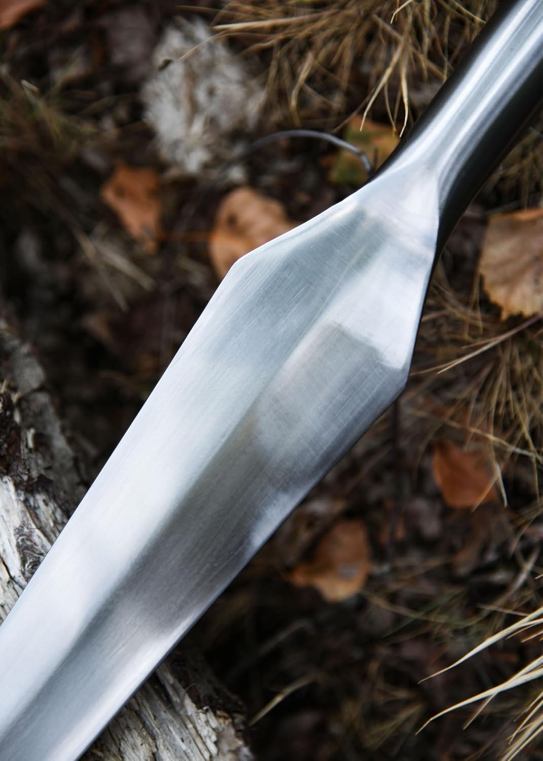 Punta di lancia medievale Punta di lancia decorativa in acciaio al carbonio - fornita senza asta. Lunghezza: ca. 49 cm - Supporto per asta: ca. 3,0 cm Un prodotto di qualità della gamma Battle-Merchant Attenzione: vendite a partire dai 18 anni - inviaci una copia della tua carta d'identità via e-mail